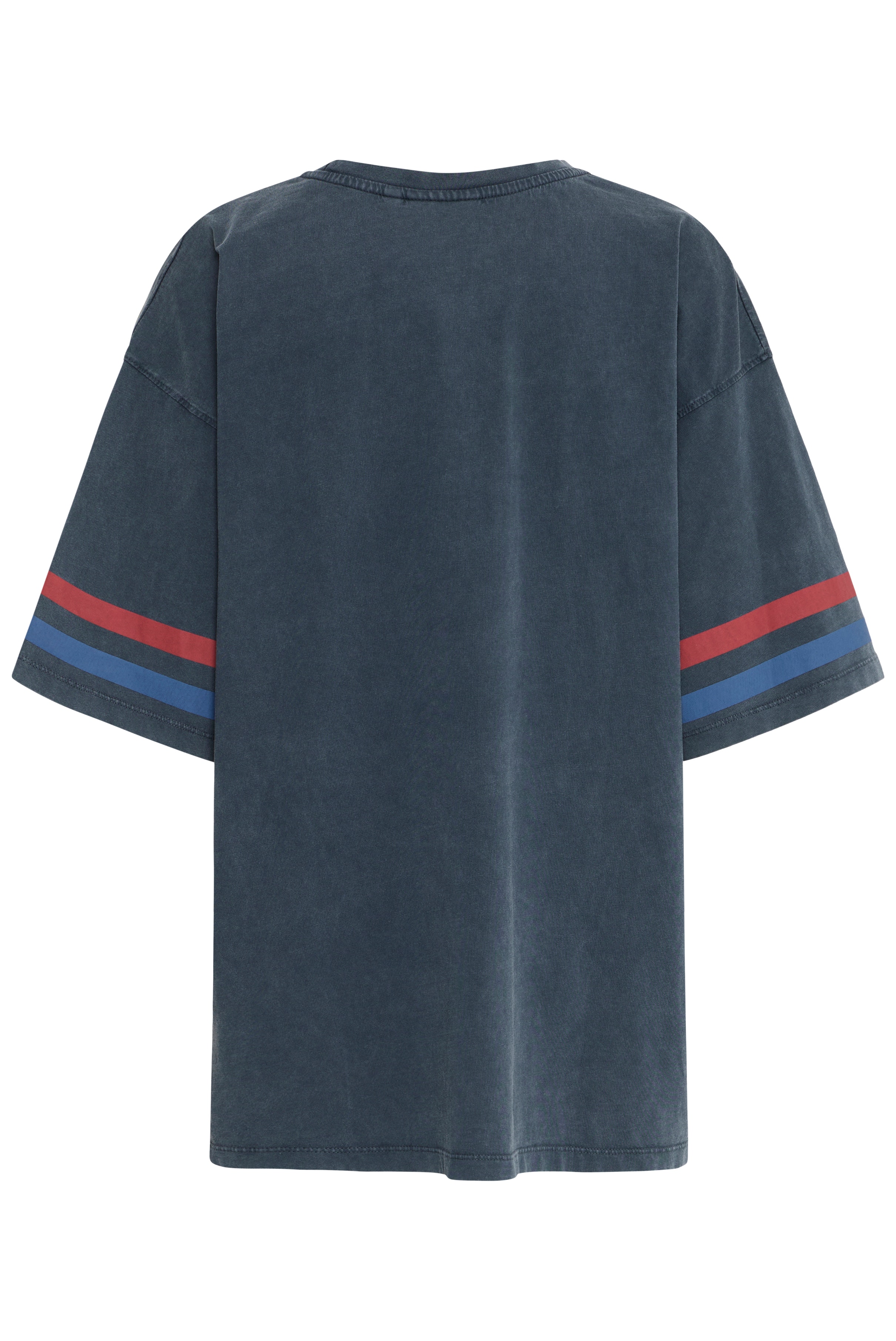 Oversize T-shirt med dropped shoulders, markant logo foran samt brede halve ærmer med dobbelte striber og klassisk rund hals.