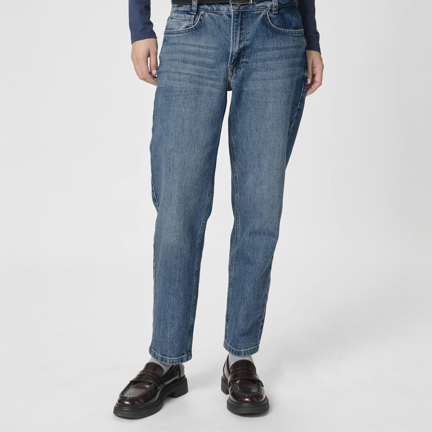 Klassiske jeans med en lige pasform, der tilbyder en tidløs og alsidig stil. De sidder behageligt omkring taljen og har lige ben, hvilket skaber et klassisk denim look.