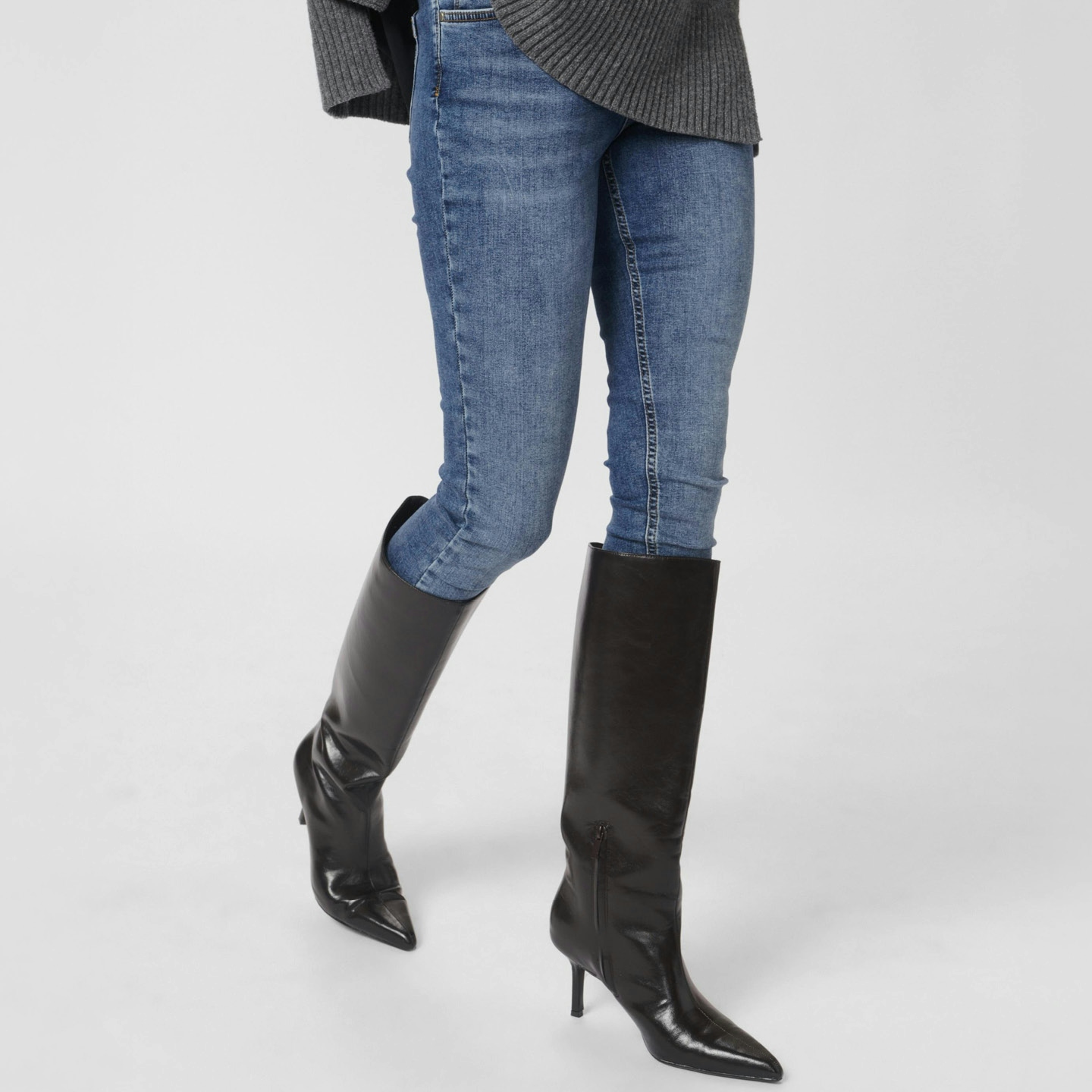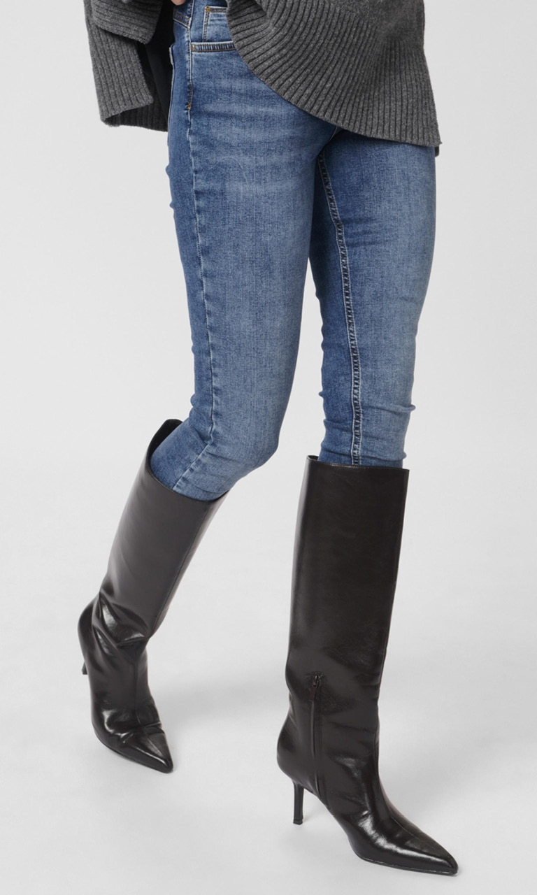 Denne pasform sidder tæt omkring lårene, snævrer lidt ind ved knæene og så bliver buksebenene bredere ned mod anklerne. De velegnede til støvler, da man netop kan have bukserne ud over – deraf navnet.