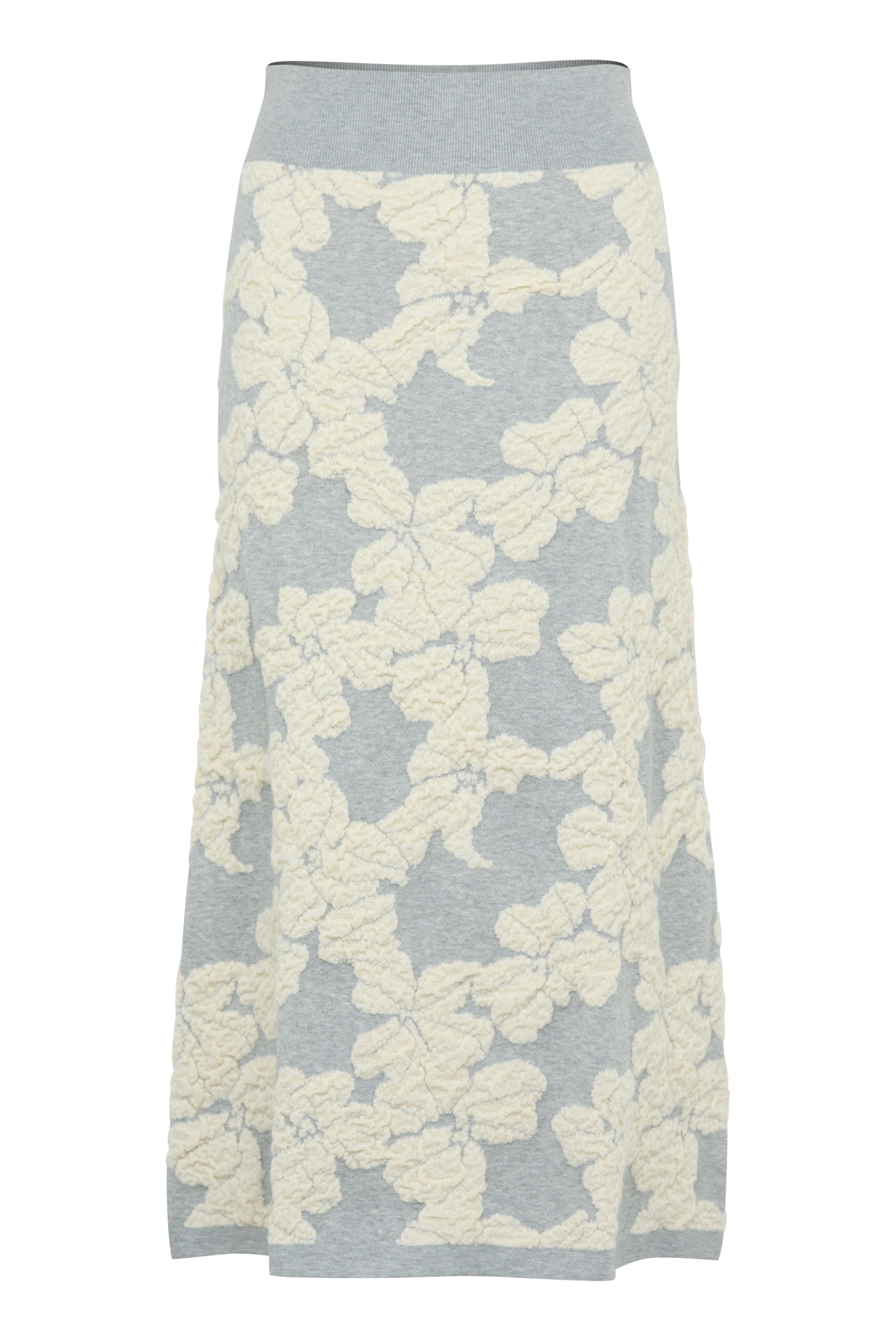 Grå nederdel med cremefarvet blomsterprint og elastikbånd i taljen. Nederdelen har en regulær pasform og en matchende bluse for et fuldendt look. Modellen er 176 cm høj og bruger størrelse 36/S.