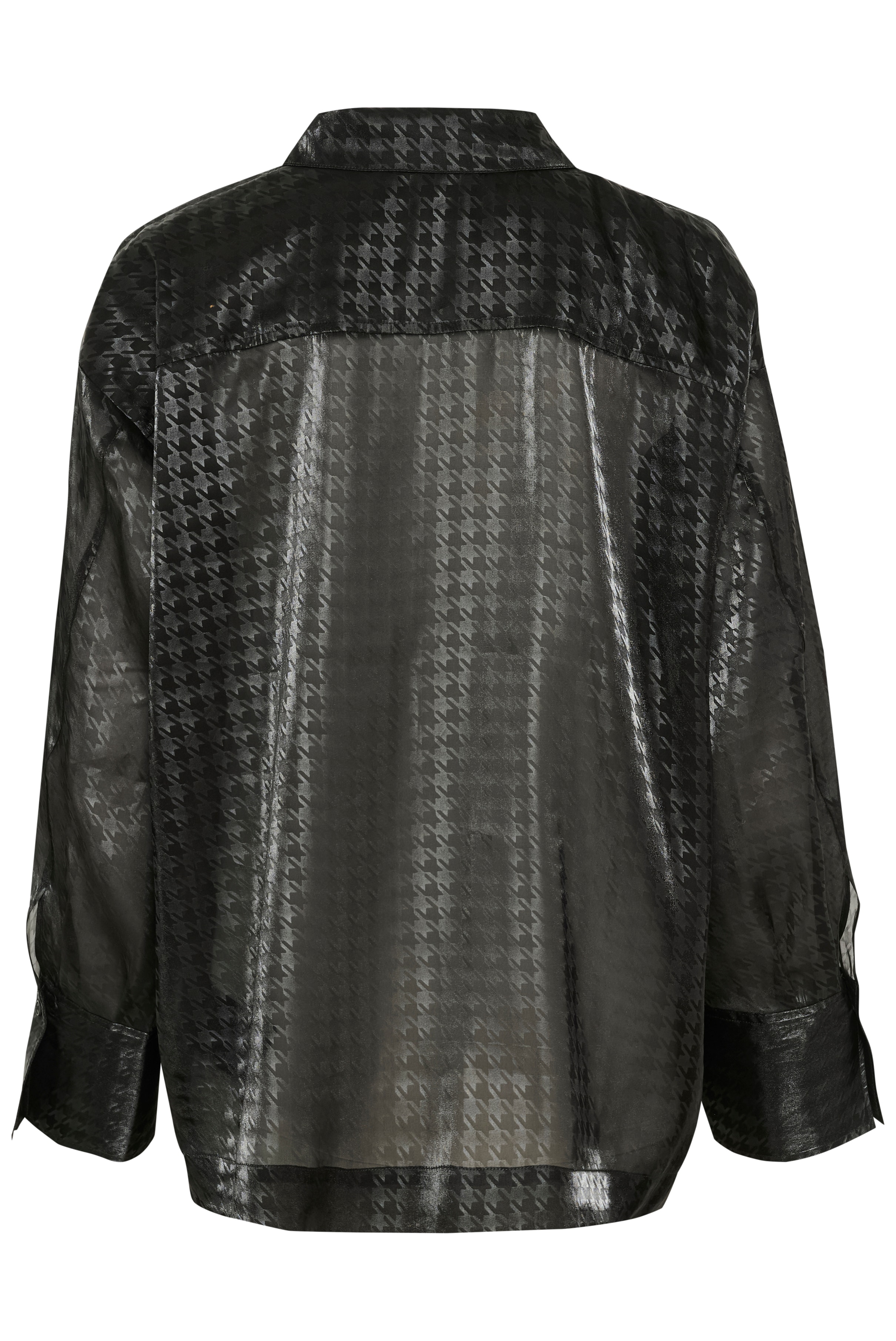 Skjorte med diskret glans og houndstooth-struktur, klassisk krave, knaplukning foran og lange ærmer med brede manchetter. Lige, afslappet pasform.