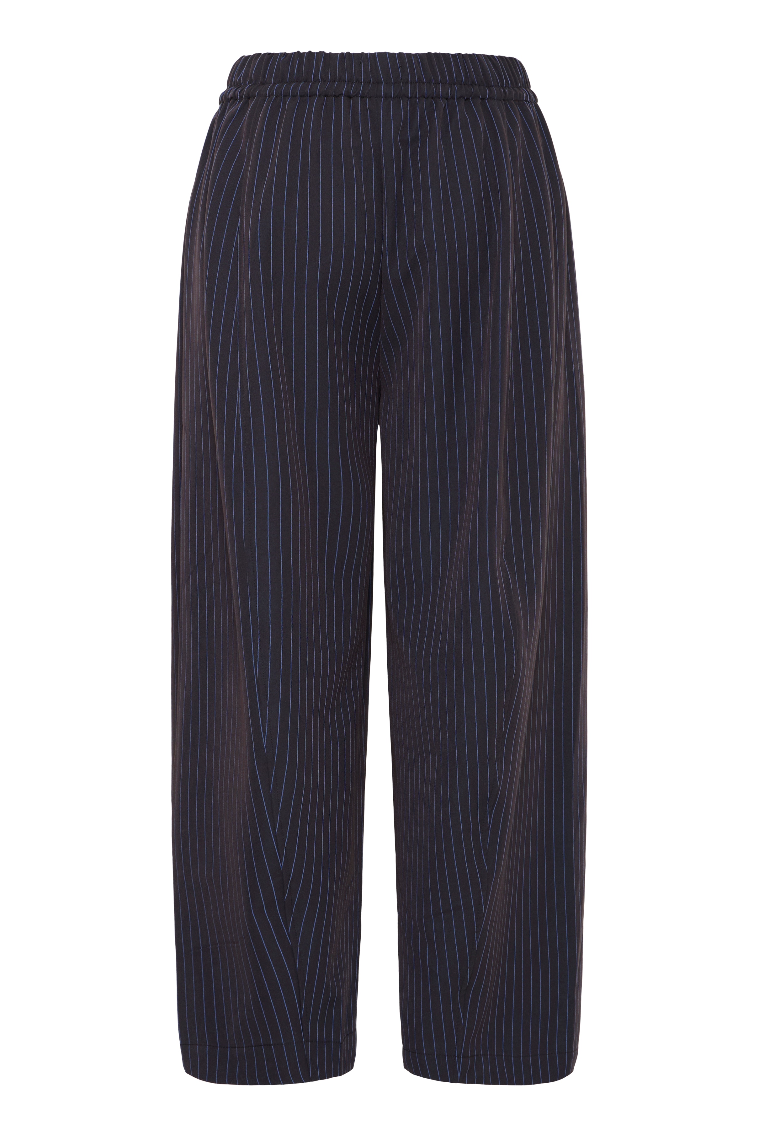 Lässige, weit geschnittene Hosen mit feinen Streifen und elastischem Bund mit Kordelzug. Der bequeme Sitz und die volle Länge machen sie ideal für Alltag und Beruf.