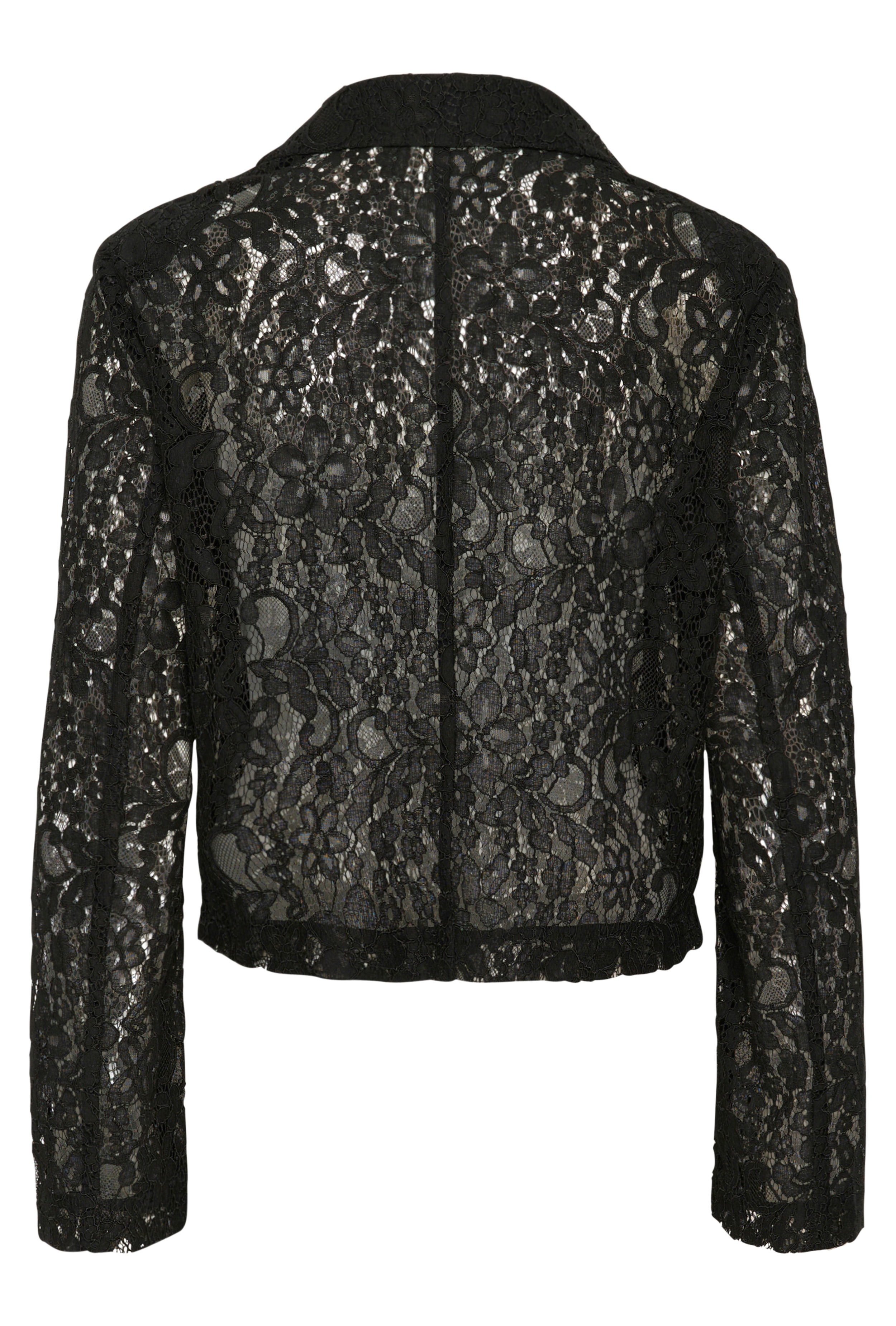 Mit diesem Spitzen-Blazer-Jackett gelingt ein selbstbewusster Look: Doppelreihig, markantes Revers, lange Ärmel und verkürzt geschnitten.