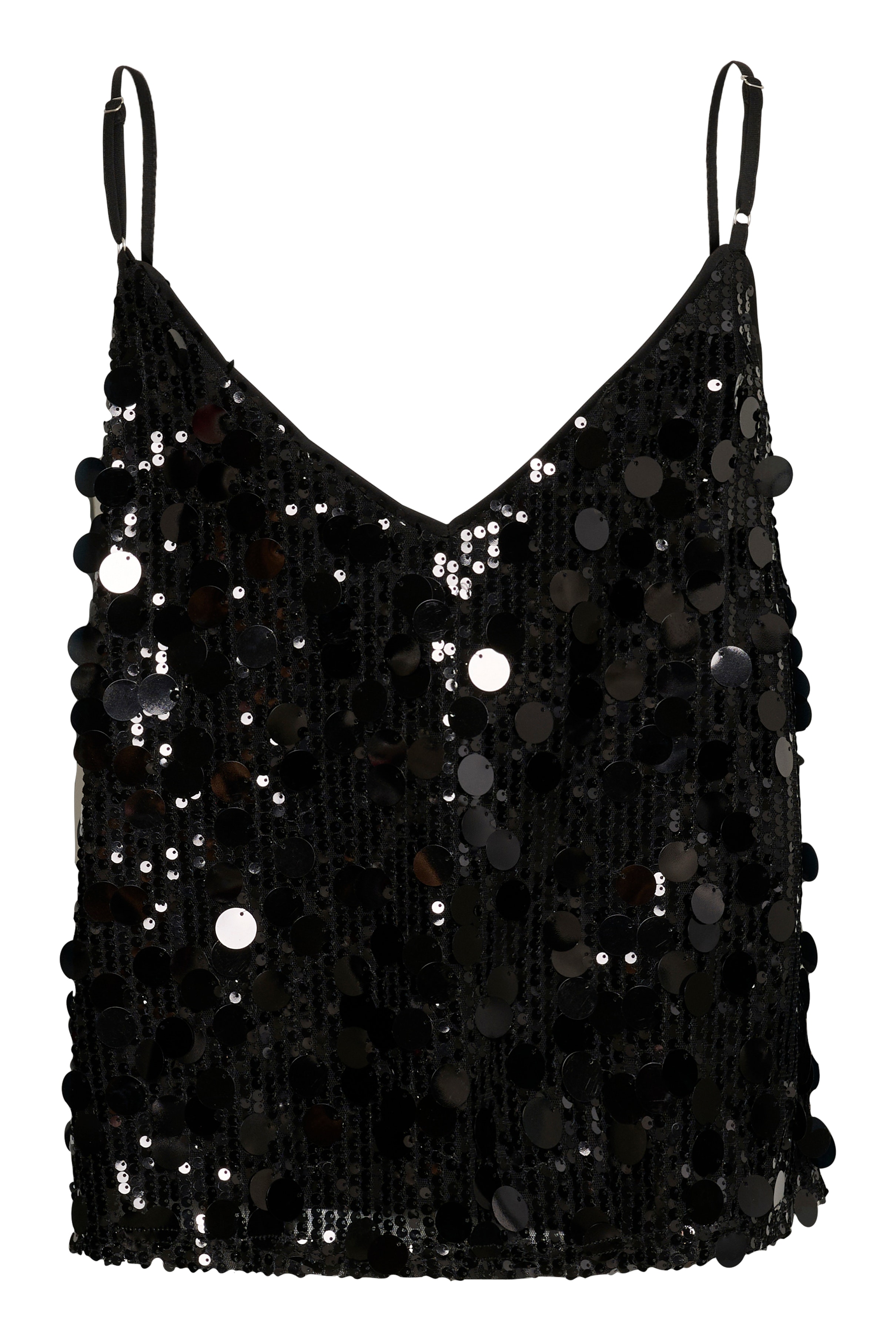 Pailletten-Top mit schimmerndem Finish, geradem und leicht lockerem Schnitt, tiefem V-Ausschnitt und feinen verstellbaren Trägern.