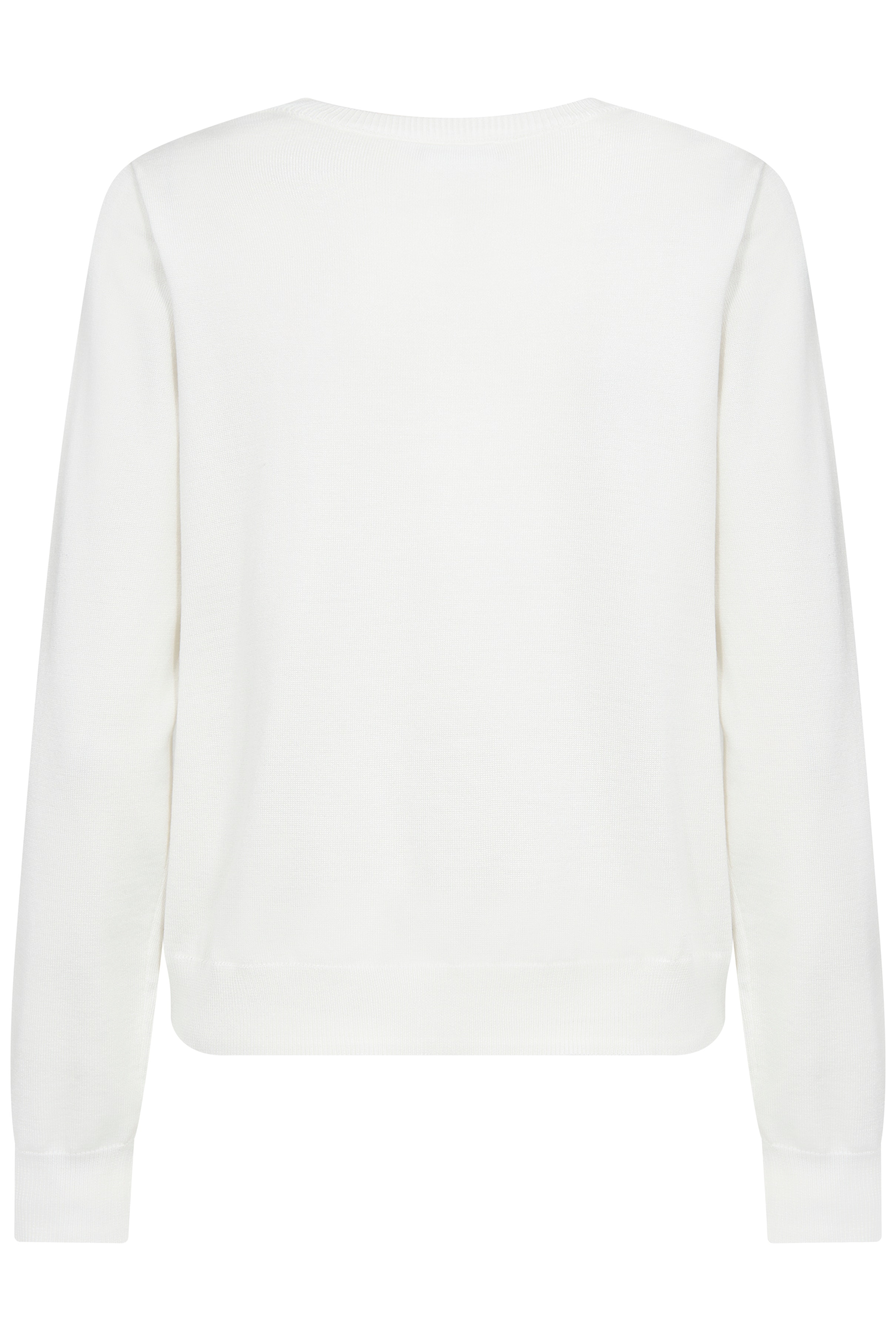 Off-White Strickjacke mit Ton-in-Ton-Knöpfen und kleinem roten Herzprint auf der Brust. Mit Rundhalsausschnitt, Rippbündchen und weichem Strickmaterial. Das Model ist 175 cm groß und trägt Größe S.