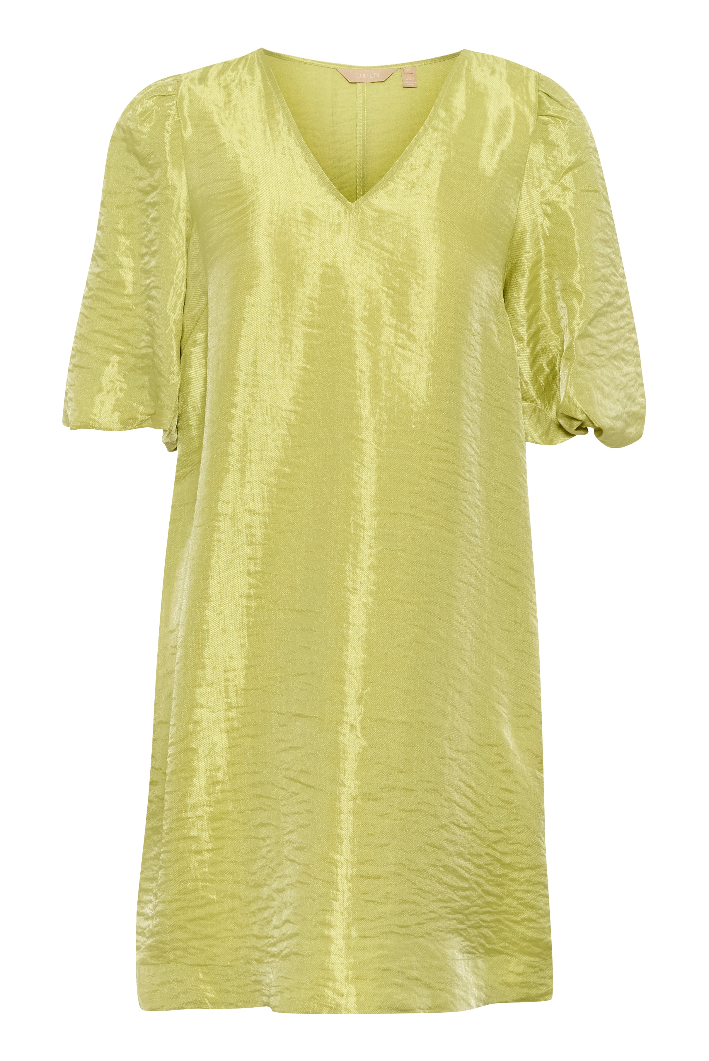 Kurzes Kleid aus leicht glänzendem Stoff. Mit V-Ausschnitt, kurzen Puffärmeln und lockerer, schmeichelhafter Passform. Ideal für festliche Anlässe – kombinierbar mit Absatzschuhen oder eleganten Flats. Das Model ist 177 cm groß und trägt Größe M/38.