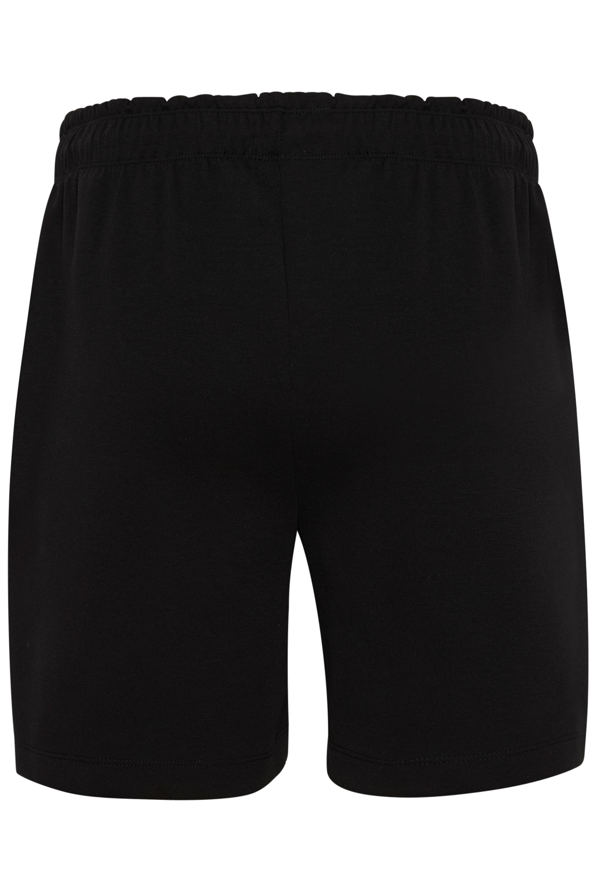 Schwarze Shorts mit weiter, lockerer Passform und elastischem Bund mit Kordelzug. Mit kleinem kontrastierendem Logo am Saum. Das Model ist 180 cm groß und trägt Größe S/36.