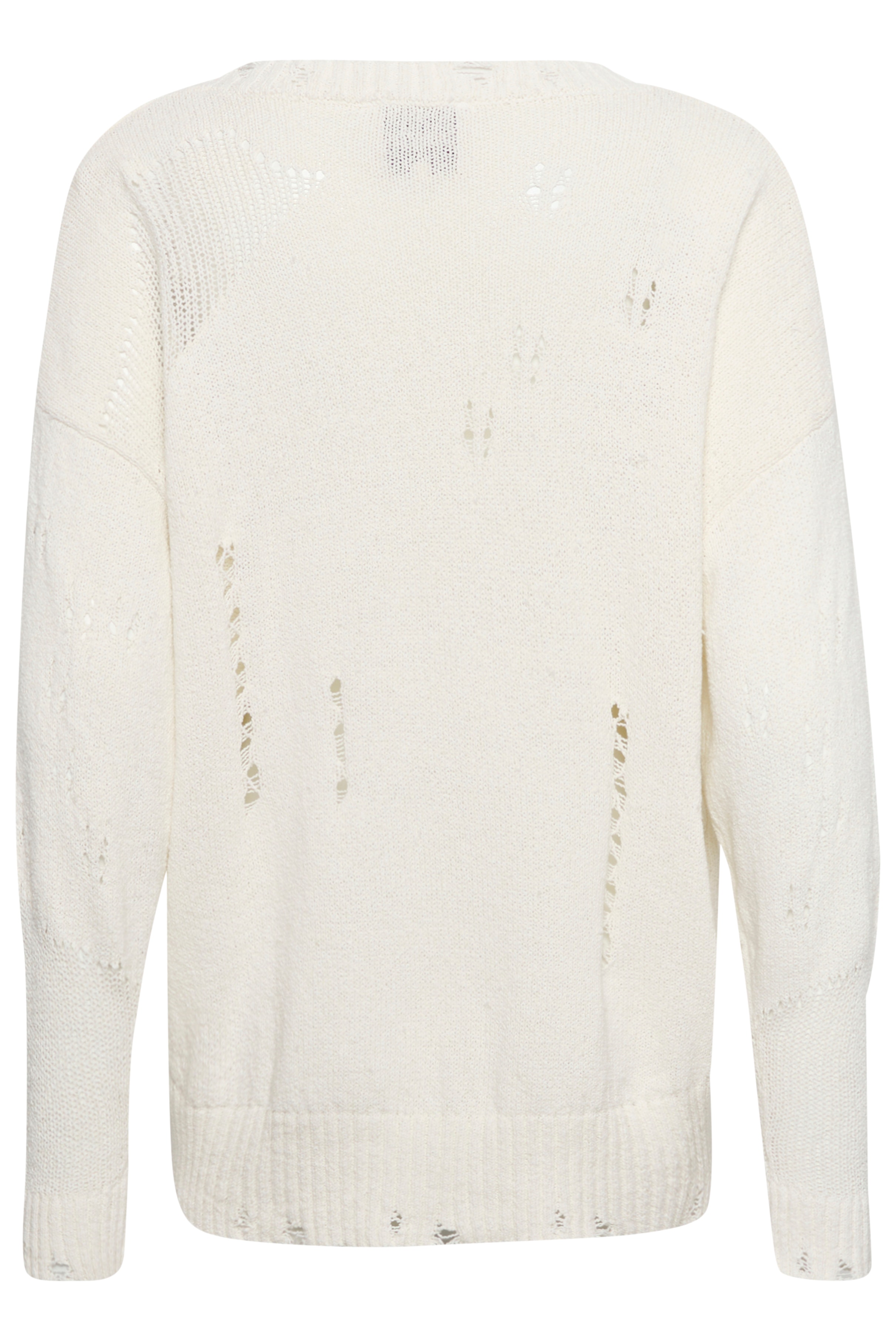Grob gestrickter Pullover im lässigen, geraden Schnitt mit tiefem V-Ausschnitt. Distressed-Look, lange Ärmel und Rippenbündchen.