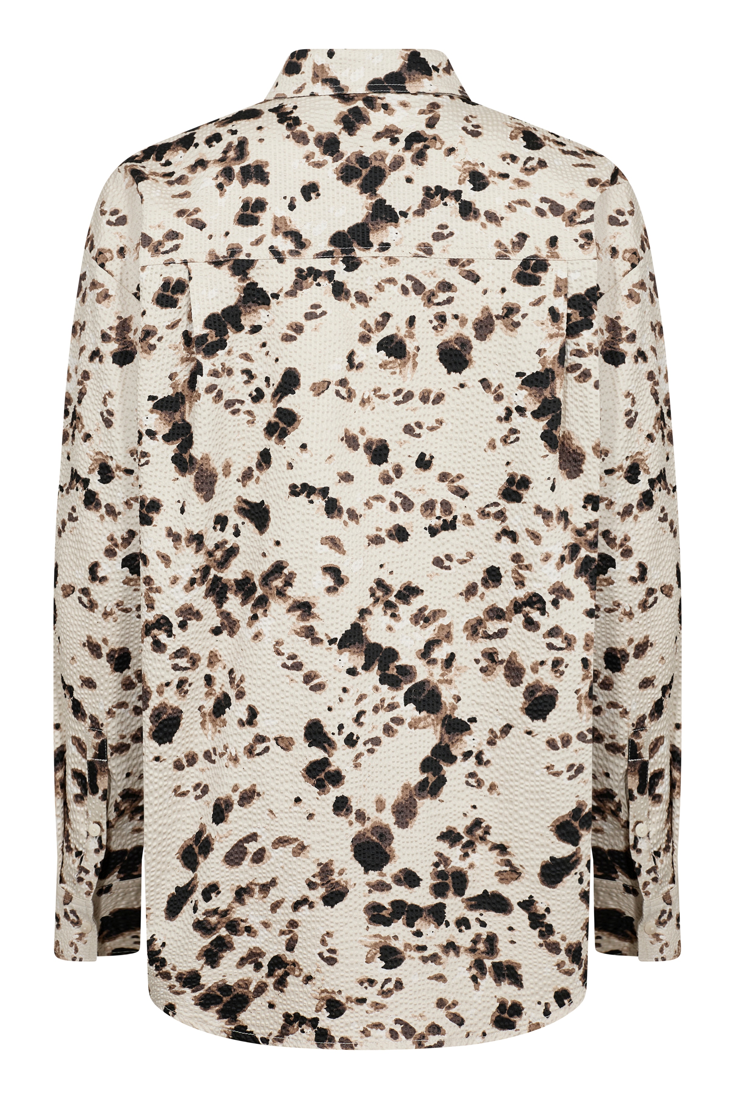 Das Model ist 178 cm groß und trägt Größe 36. Diese Bluse hat eine strukturierte Oberfläche und ein modernes, vom Leopardenmuster inspiriertes Design. Mit klassischem Kragen, Brusttaschen mit Klappe und durchgehender Knopfleiste. Offen über einem T-Shirt oder geschlossen als Statement-Bluse tragbar – perfekt für Alltag und Abend.