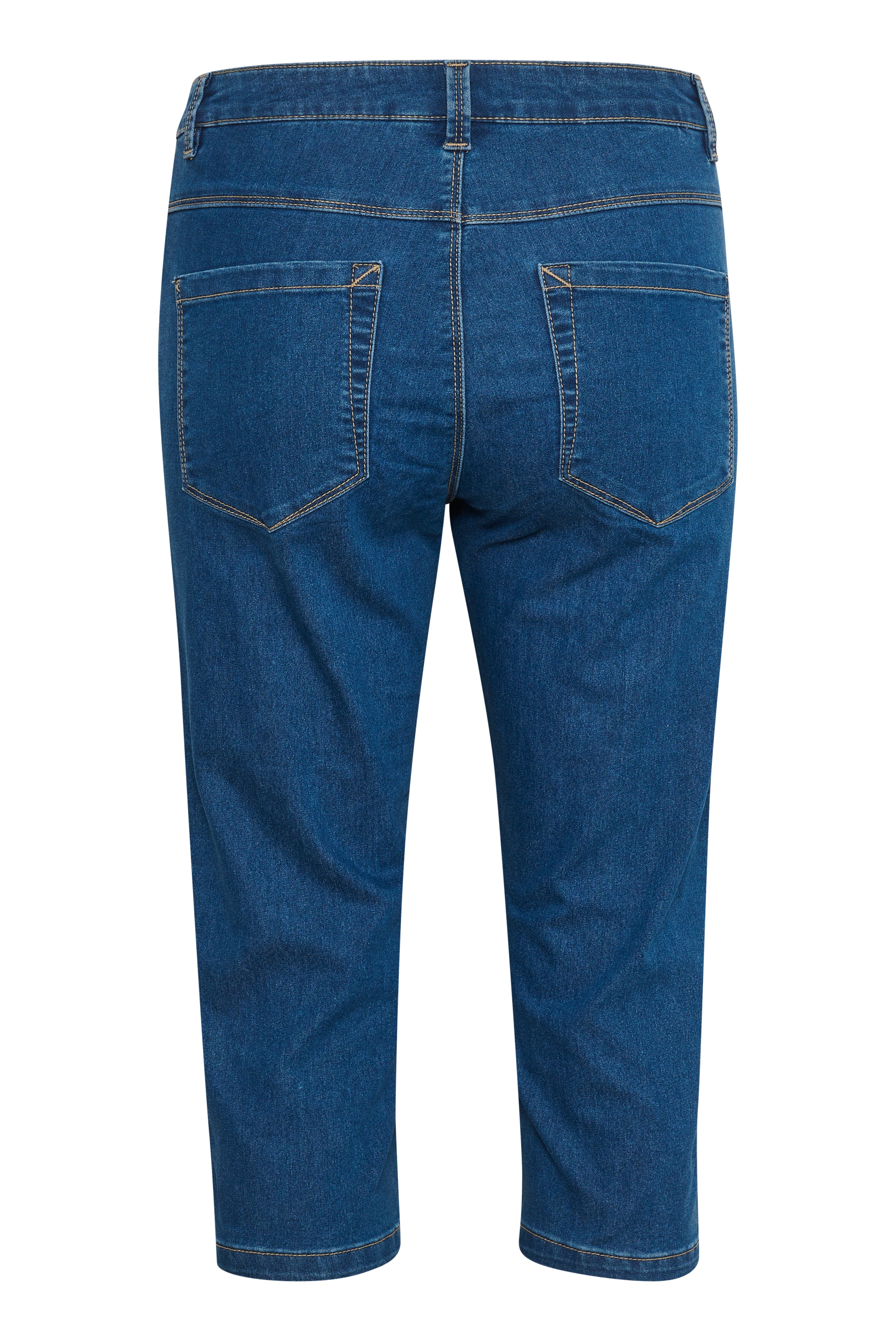 Fitted denim capris with classic five-pocket styling and contrast stitching. Made from stretchy cotton blend for optimal comfort and shape retention. Finished with belt loops and a button fly.