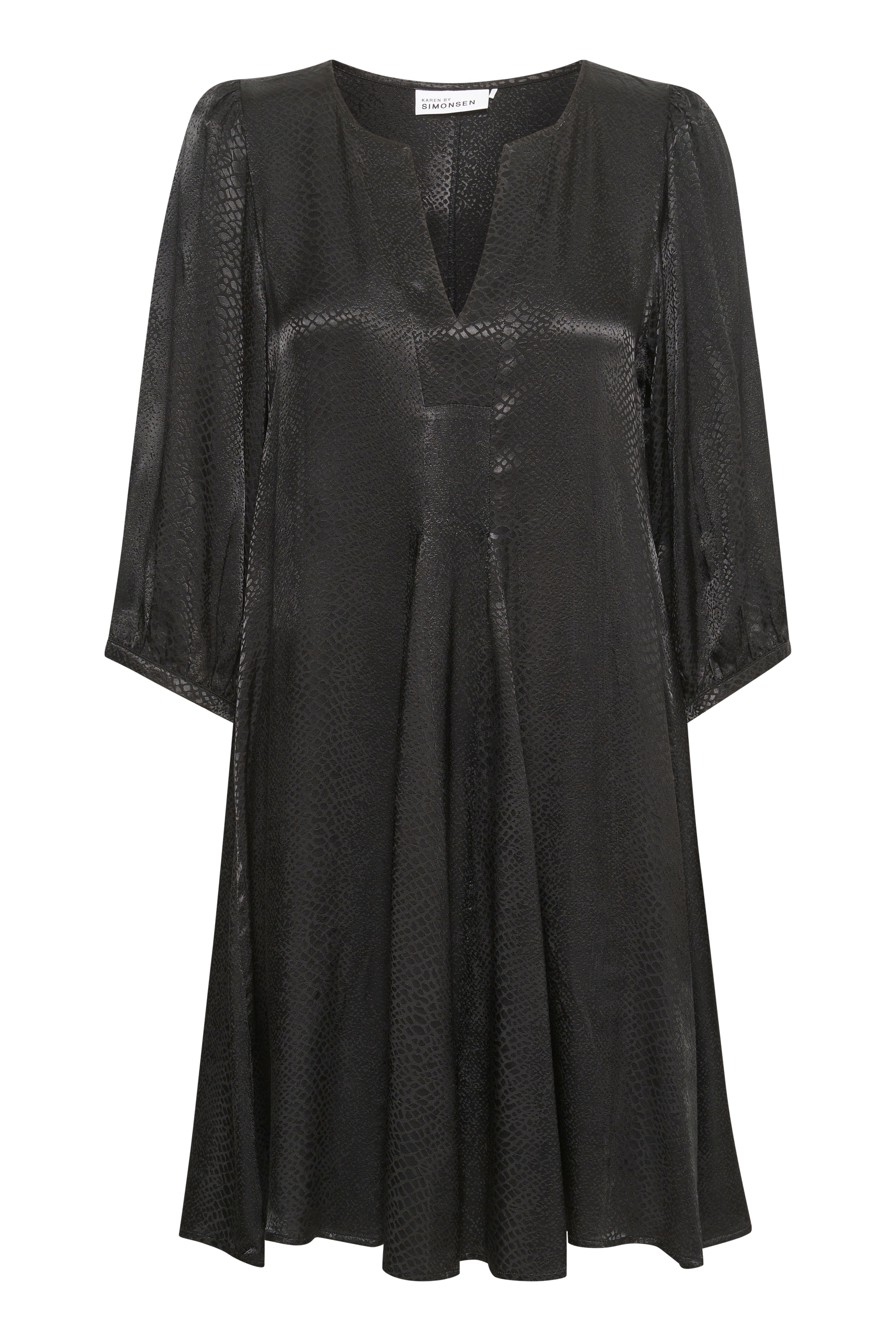 Dress in a lightweight, shiny fabric with subtle texture, V-neckline and three-quarter sleeves. The A-line silhouette creates a feminine and elegant drape – perfect for everyday wear and seasonal occasions.