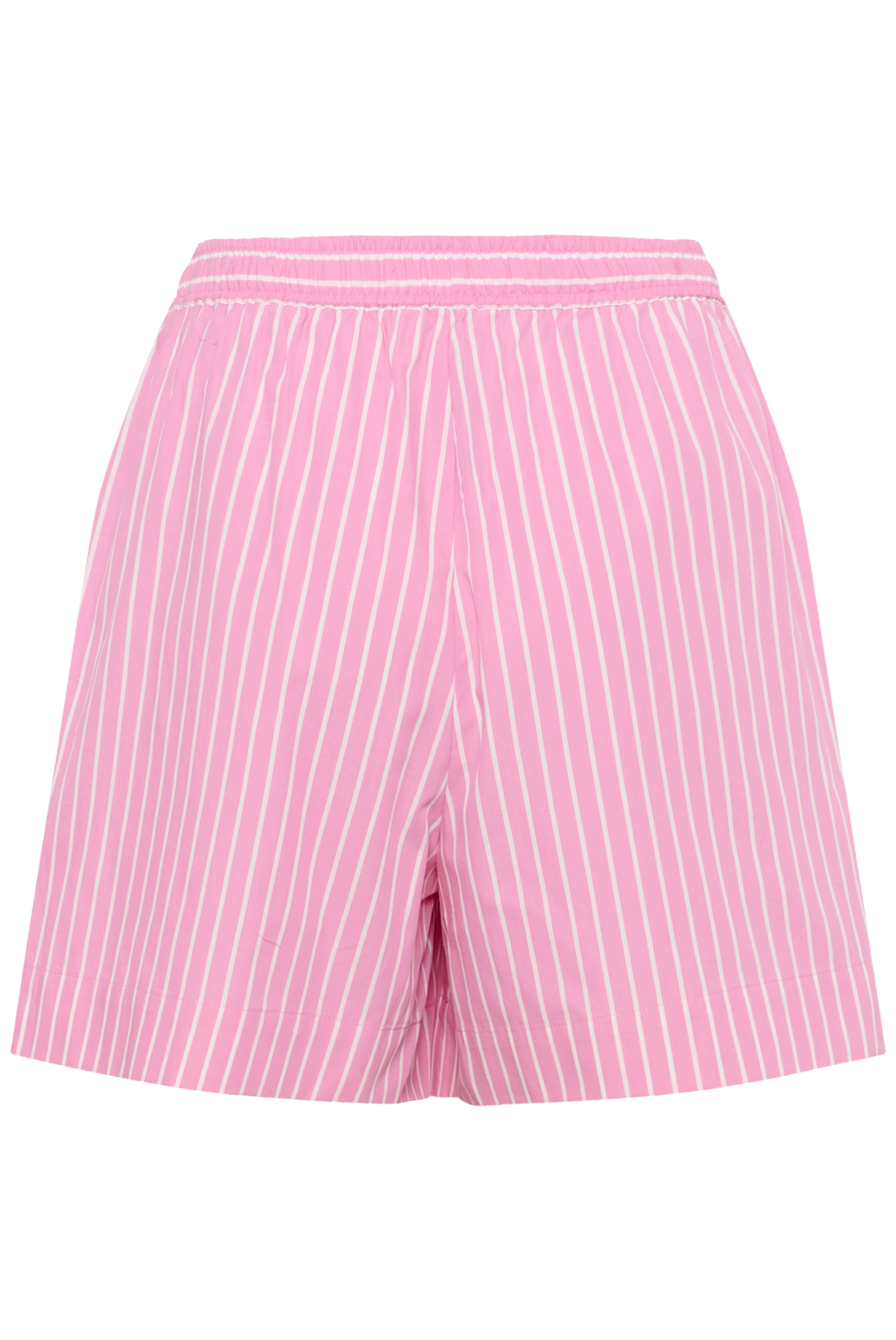 Lightweight shorts in a fresh pink and white stripe. Designed with an elasticated waistband, adjustable drawstring, and practical side pockets for a relaxed fit. Perfect for everyday wear and summer outings. The model is 170 cm tall and wears size M.