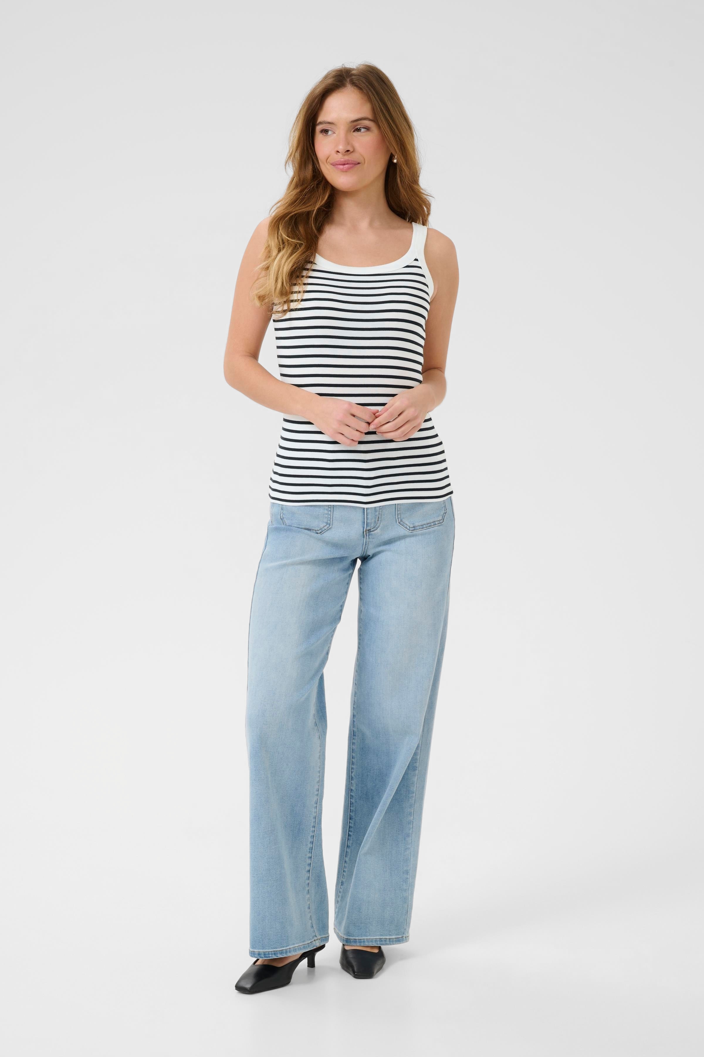 Striped tank top with a straight silhouette, wide straps, and a ribbed texture. Sleek neckline and close fit create a refined, understated look.