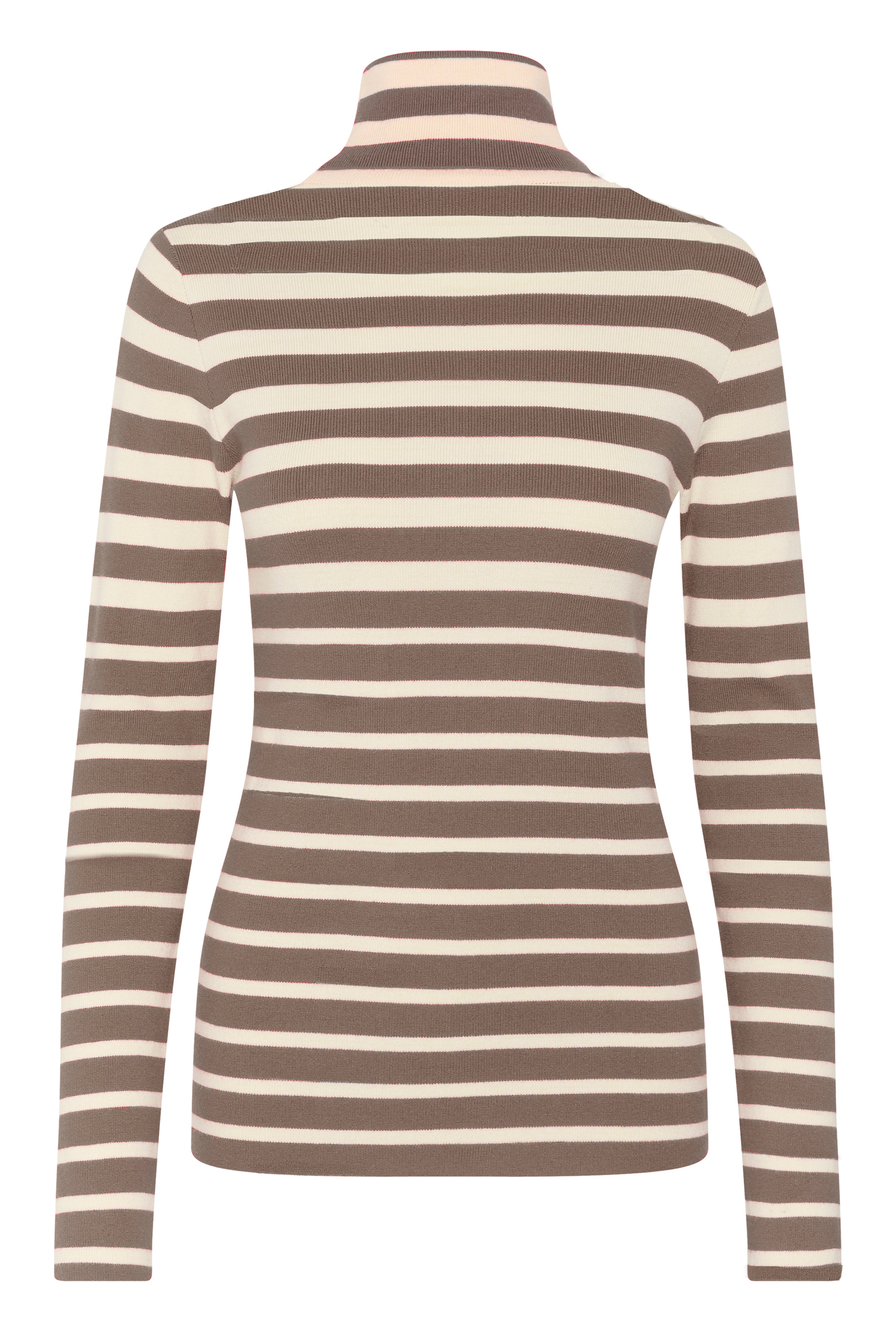 Striped turtleneck top with a fitted silhouette, ribbed texture, and long sleeves. Horizontal stripes add a bold edge to this timeless style.