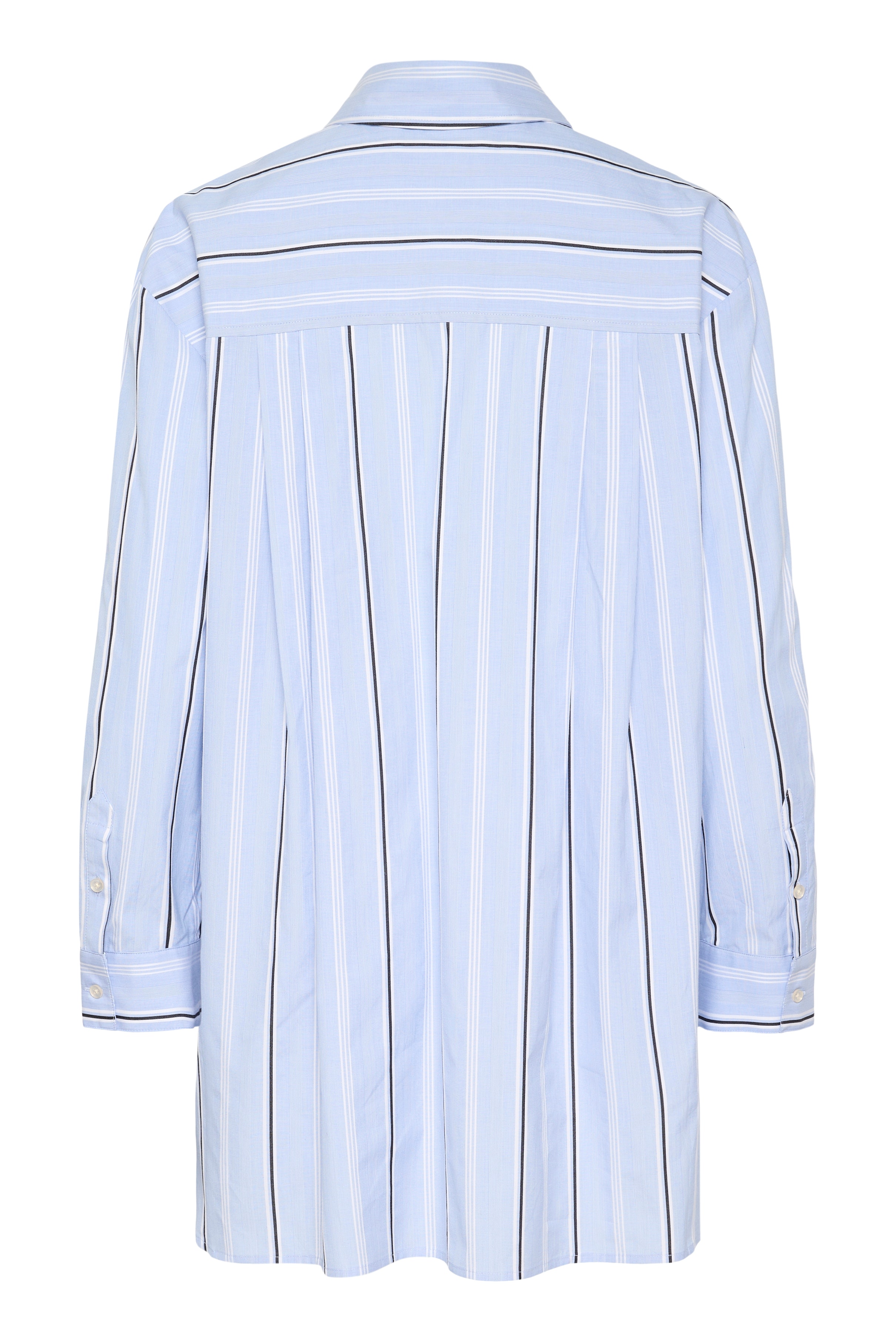 Striped shirt featuring a relaxed, straight fit with long sleeves, pointed collar, button front, and rounded hem. Subtle vertical stripes add a sharp, timeless flair.