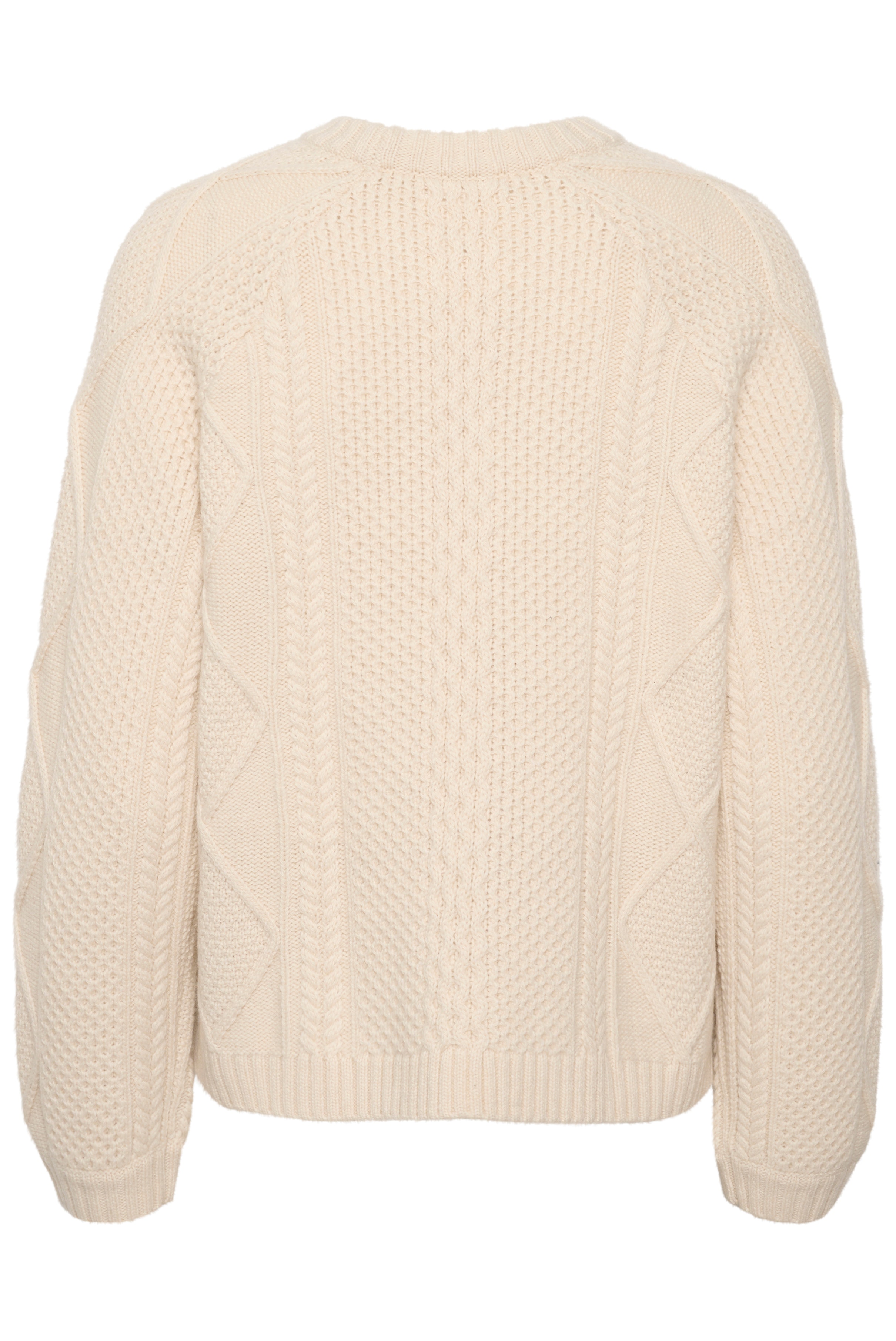 This knitted sweater in a soft, creamy shade is perfect for keeping you warm in style. Featuring a cable knit pattern and decorative side buttons, it combines classic design with modern details. Made from soft material for maximum comfort.