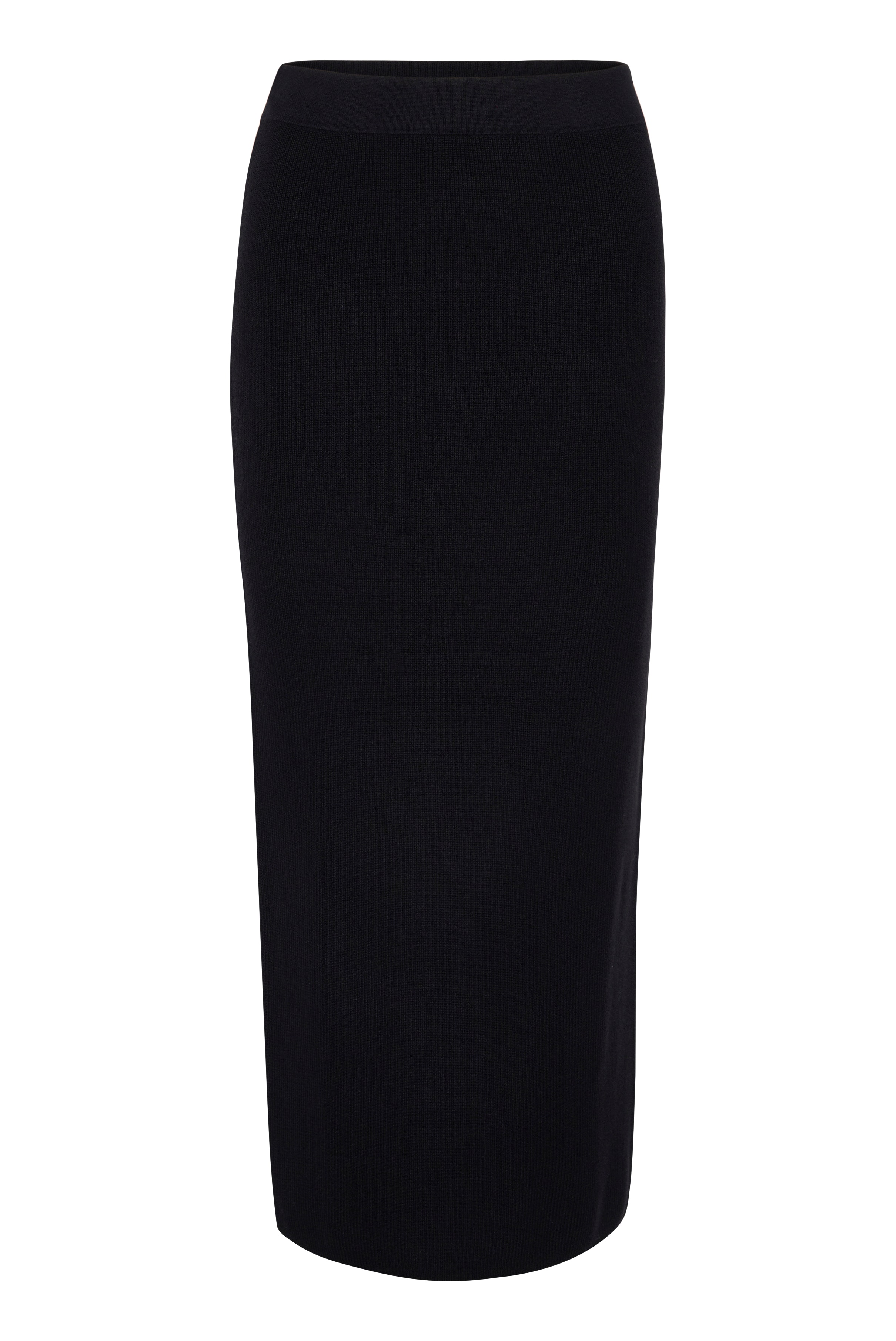 Long rib-knit skirt in black with an elastic waistband. The skirt has a slim fit and comes with a matching top. The model is 178 cm and wears a size S / 36.
