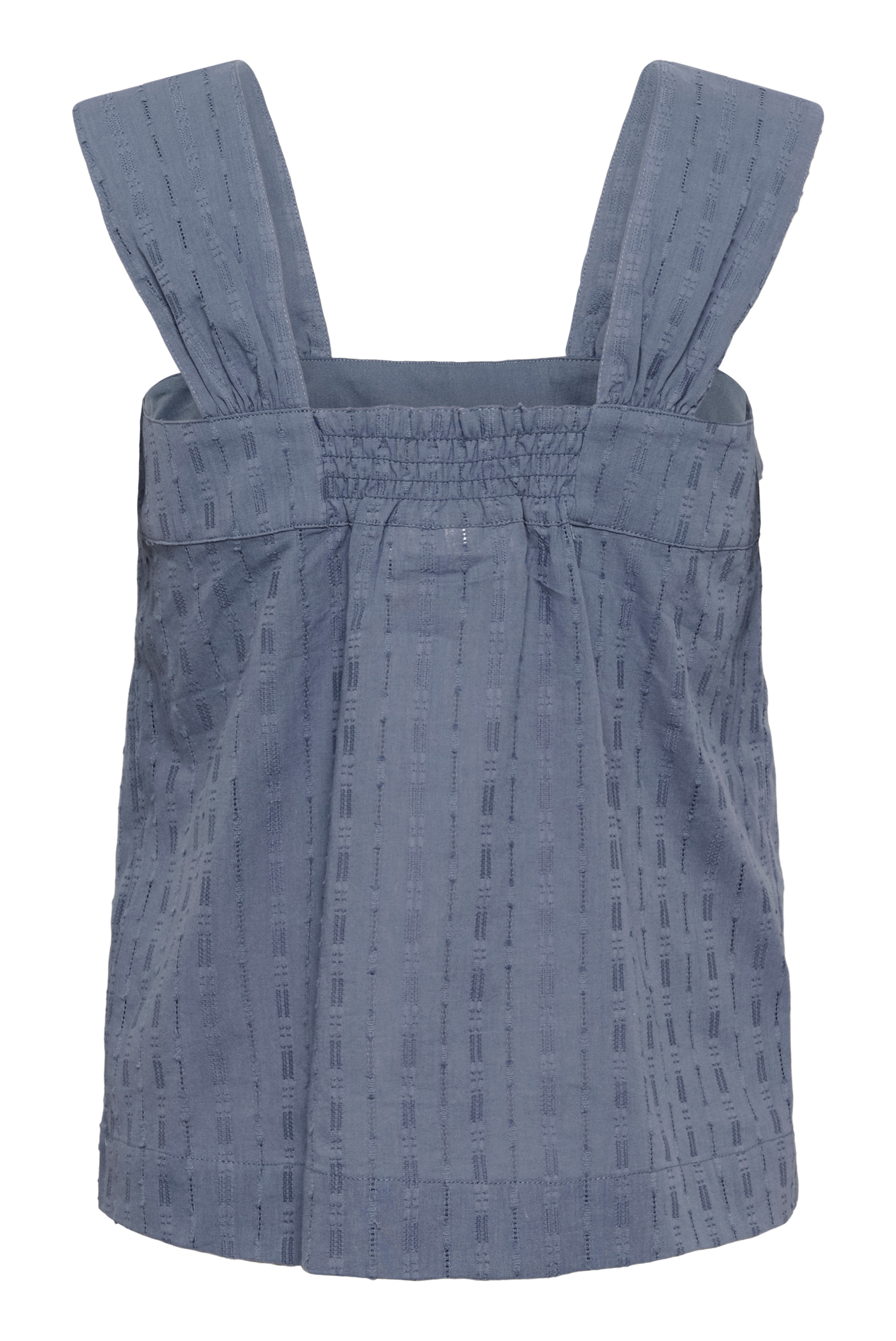 Square neck top with wide straps, straight silhouette and lightly textured finish. Front pleat detail adds dimension, with relaxed, easy fit throughout.