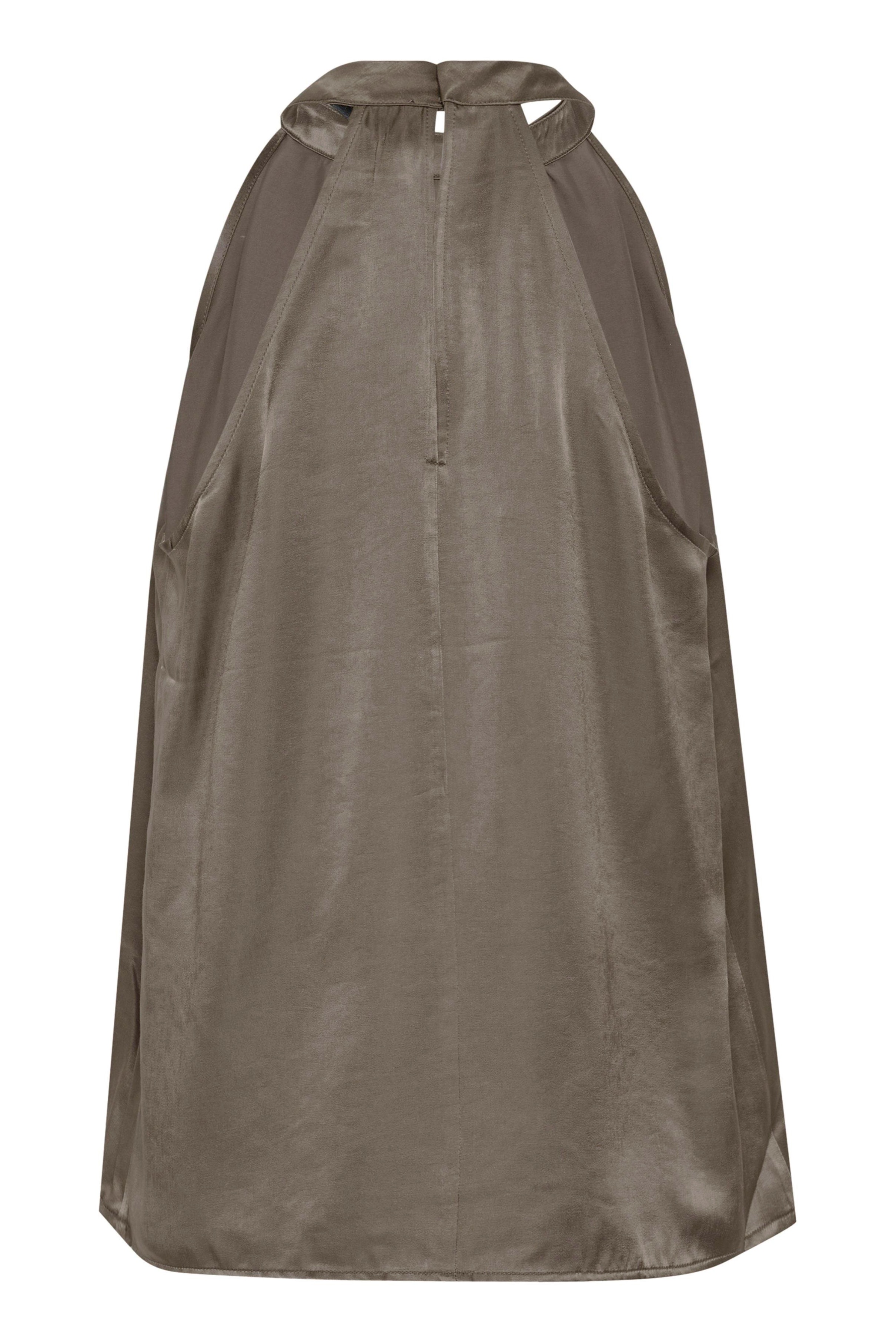 This sleeveless top features a high gathered neckline and an easy, fluid silhouette. The back fastening creates a refined finish, while the soft drape enhances its modern appeal.