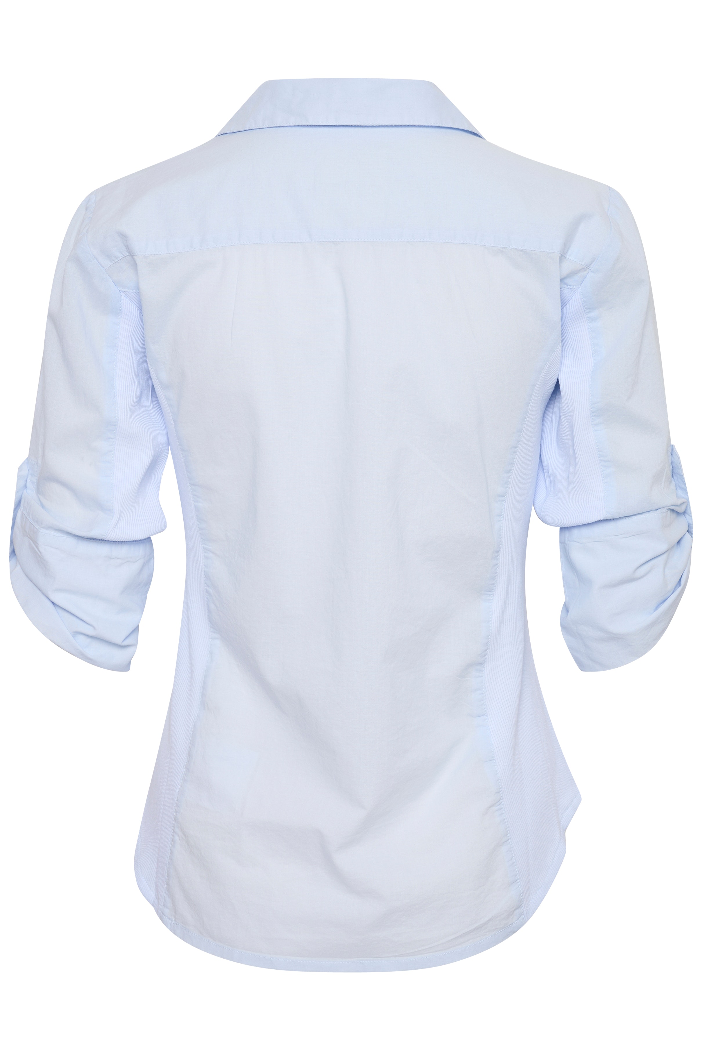 The model is 178 cm tall and wears a size 36. This lightweight cotton shirt features a classic cut with chest pockets and 3/4-length sleeves that can be rolled up and secured. The feminine fit and soft light blue shade make it ideal for both work and casual days. Style it with jeans or a skirt for a relaxed look.