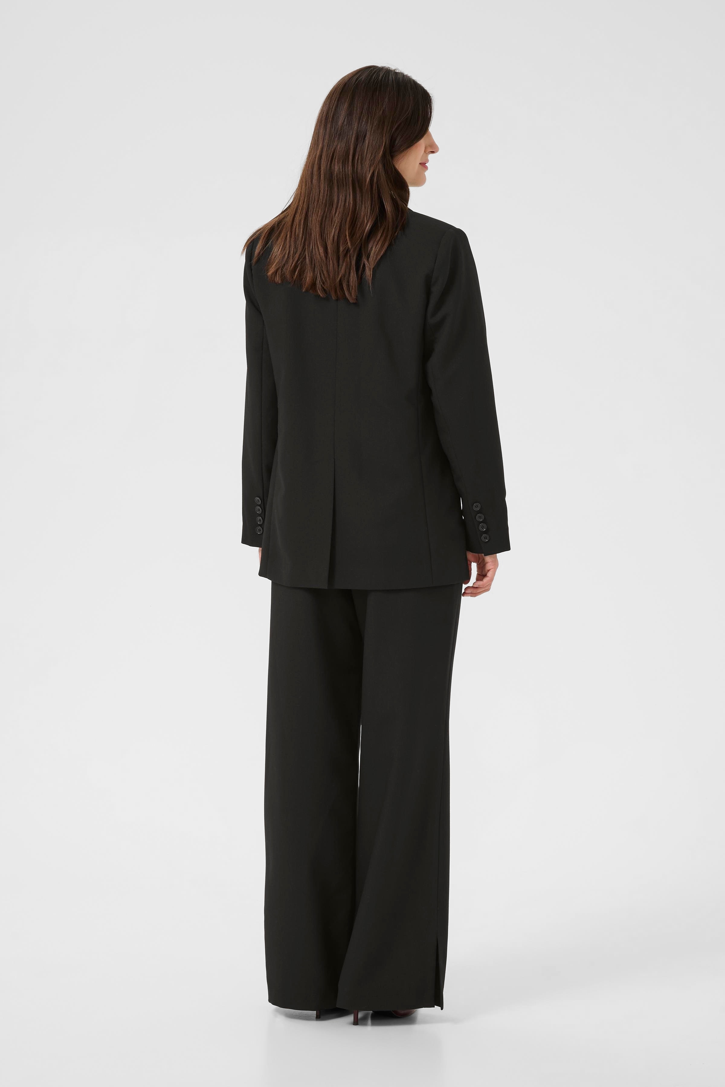 Klassisk sort blazer med tidløs elegance og et moderne snit. Blazeren har én-knapslukning, lommer med klap og let polstrede skuldre for et skarpt udtryk. Perfekt til både kontor og festlige lejligheder. Modellen er 177 cm høj og bærer størrelse 38.