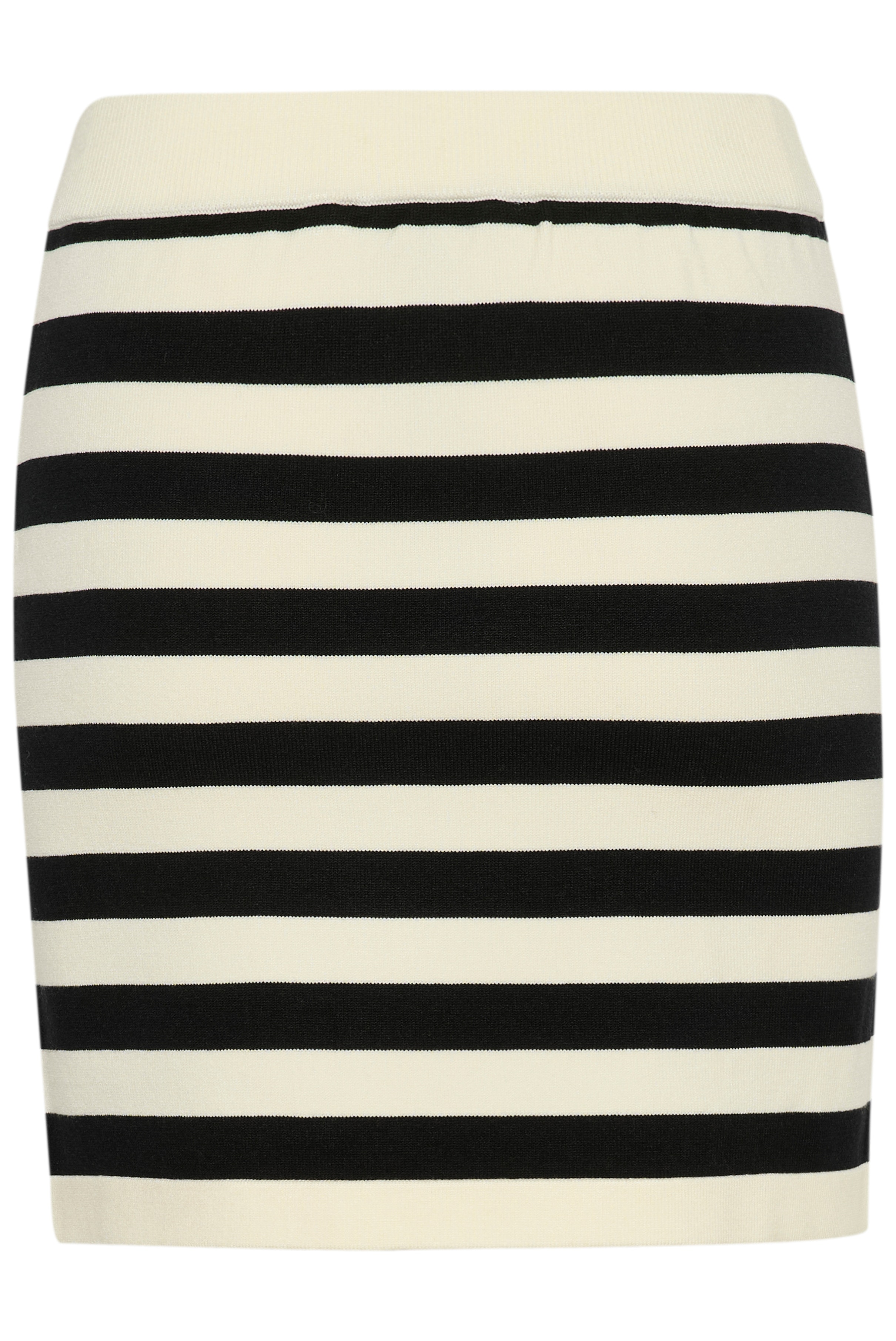 Gestreepte minirok met rechte, aangesloten pasvorm. Ontworpen met brede horizontale strepen voor een grafisch en gestructureerd uiterlijk. Het model is 176 cm lang en draagt maat S/36.