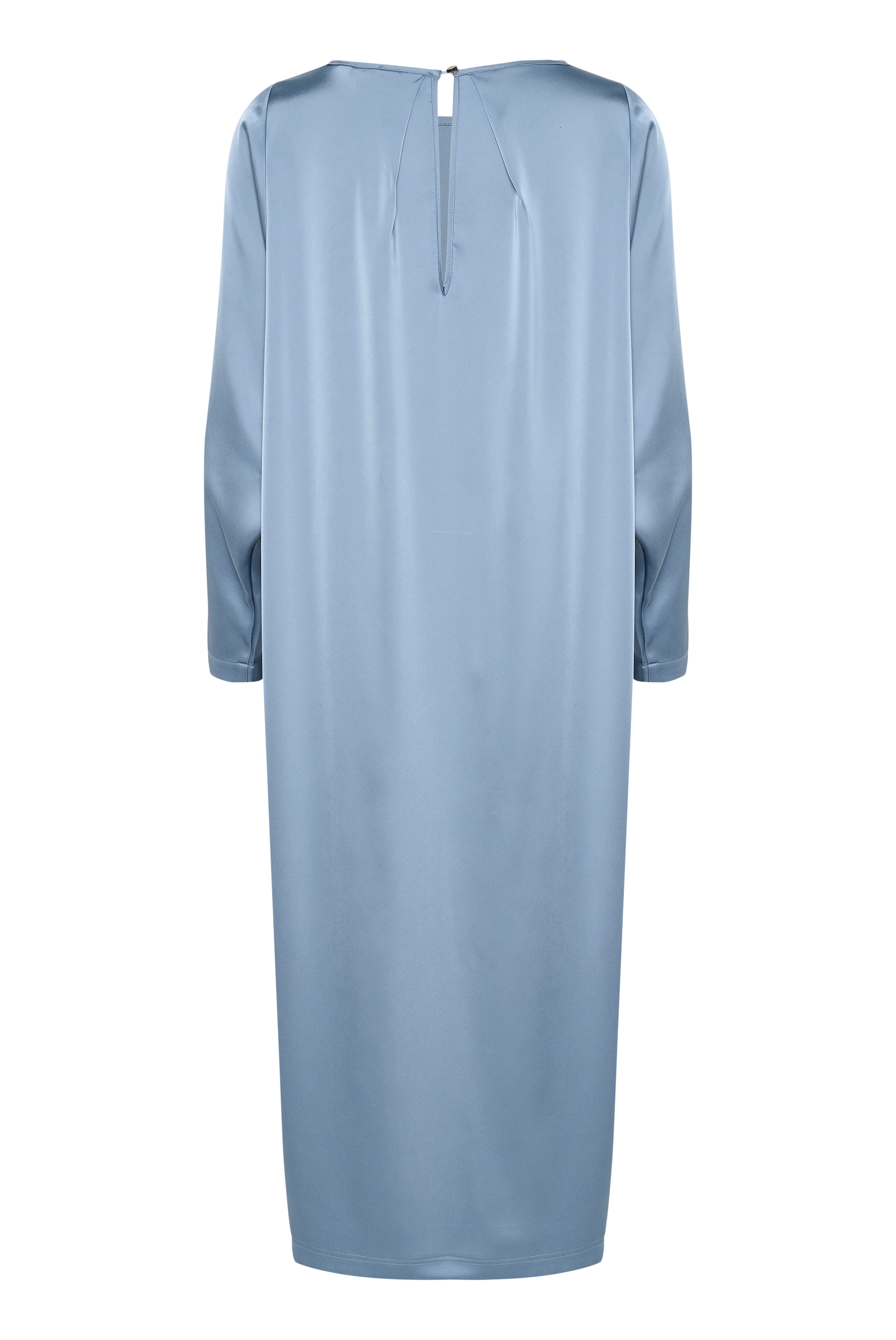 Deze satijnen jurk heeft een relaxte pasvorm met een ronde hals en een zachte glans, wat zorgt voor een moeiteloos elegante uitstraling. De zijsplit voegt een subtiel vleugje verfijning toe.
