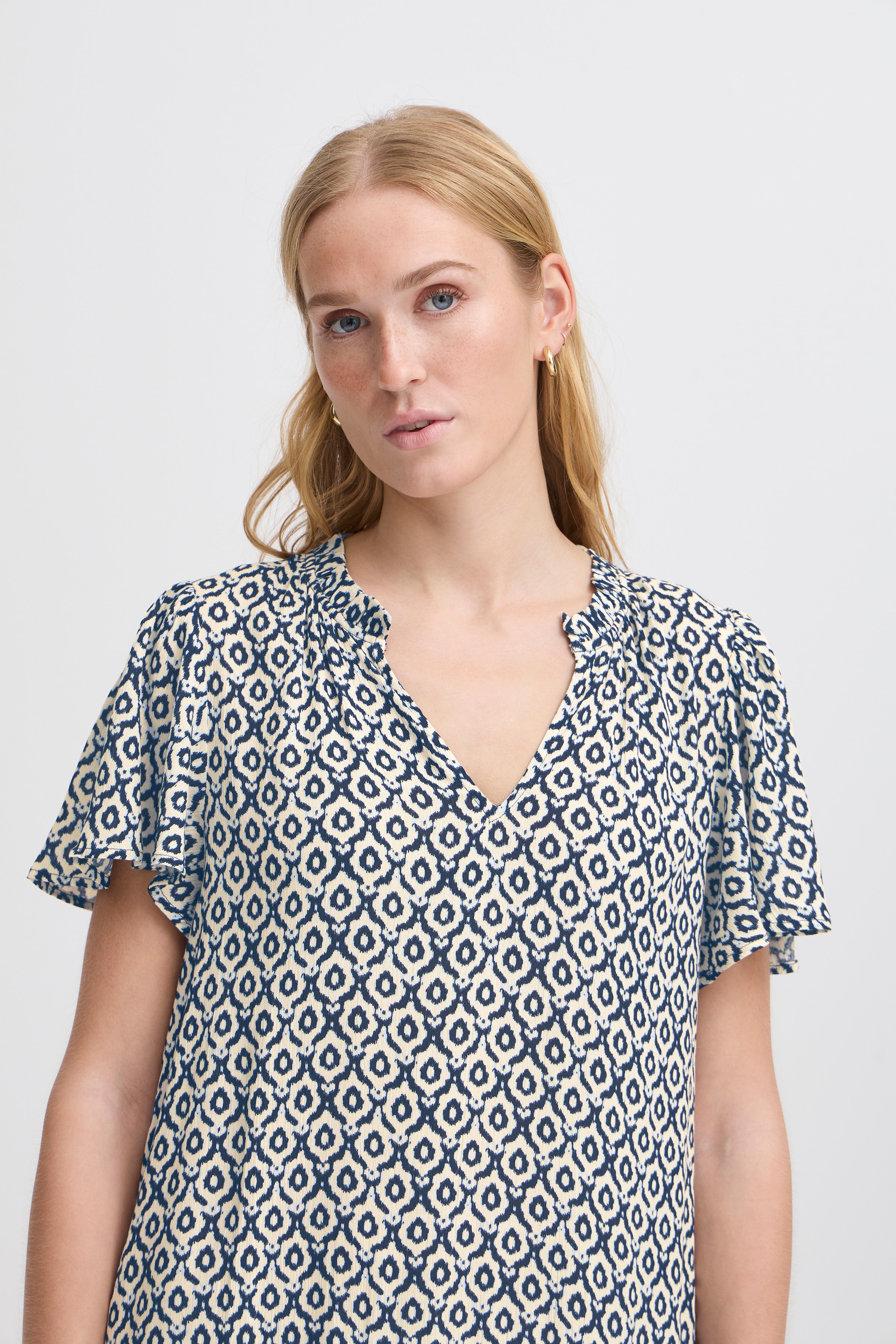 Leopardprint jurk met rechte, losse pasvorm. Voorzien van V-hals, korte mouwen en een verlaagde taille met gelaagde rok.
