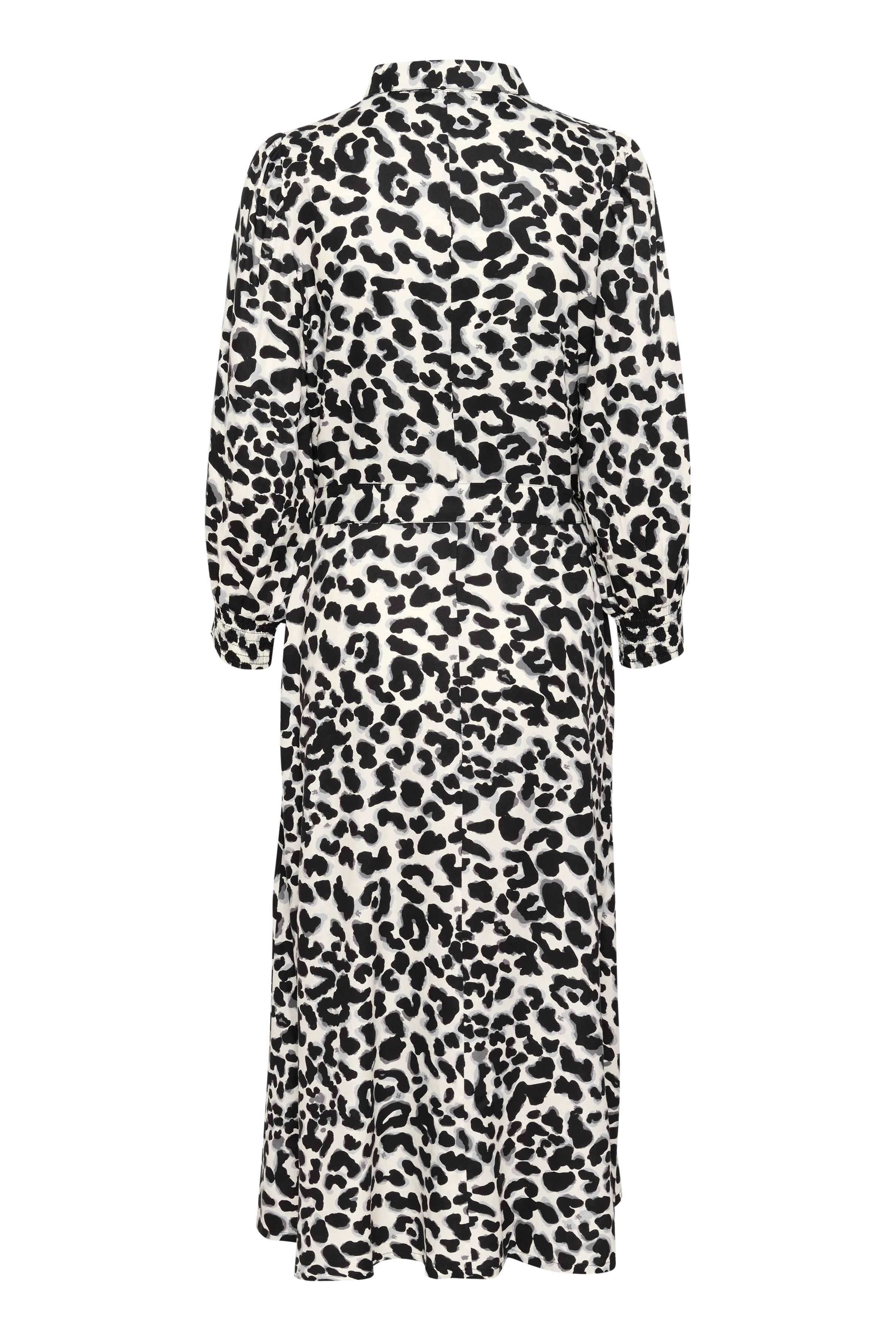 Overhemdjurk met rechte pasvorm, midi-lengte en gestructureerde kraag. Voorzien van bijpassende strikceintuur, lange mouwen met plooimanchetten, abstract dessin.