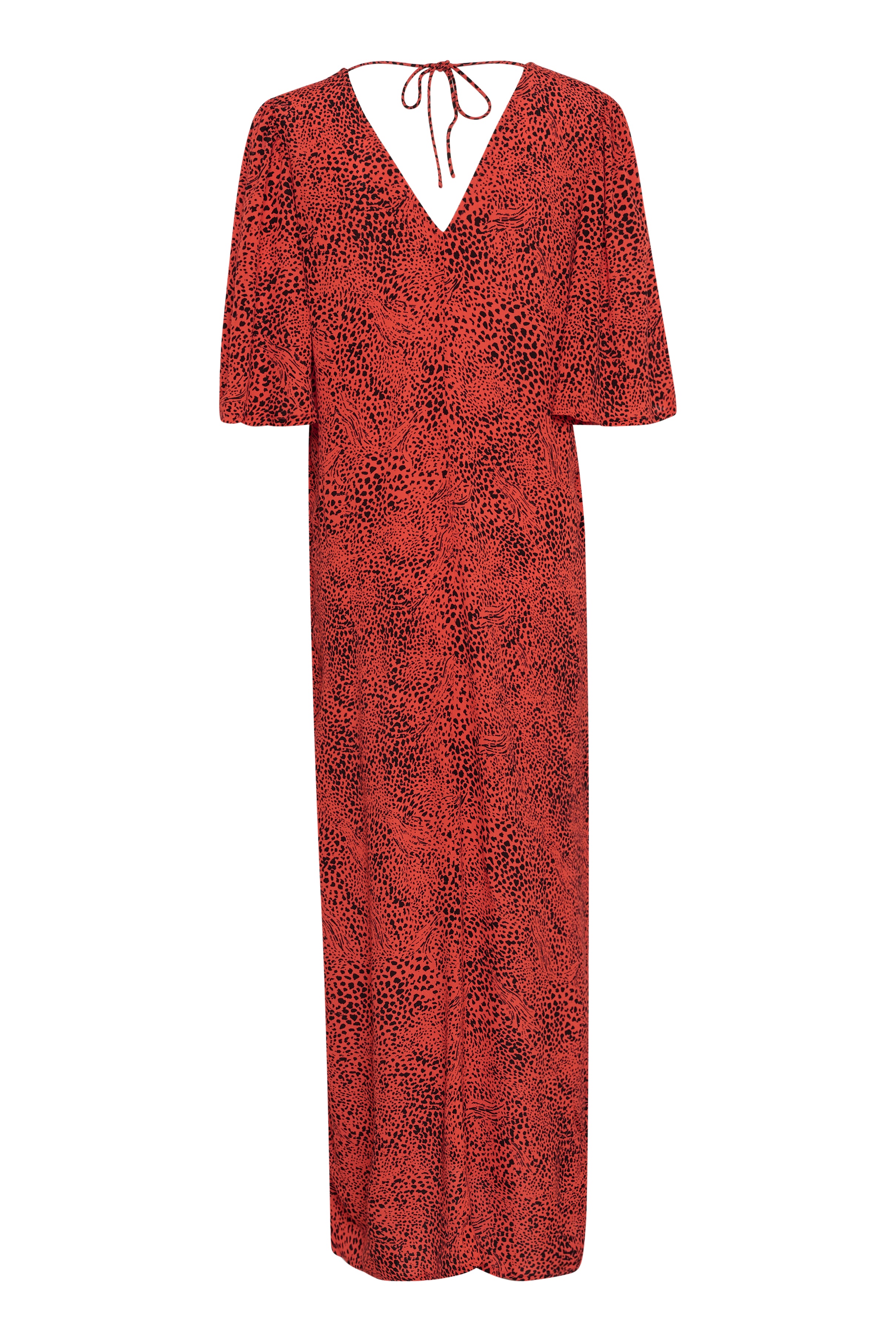 Maxi-jurk met rechte pasvorm, diepe V-hals en korte, wijde mouwen. Voorzien van een split aan de voorkant en een strikdetail in de nek.