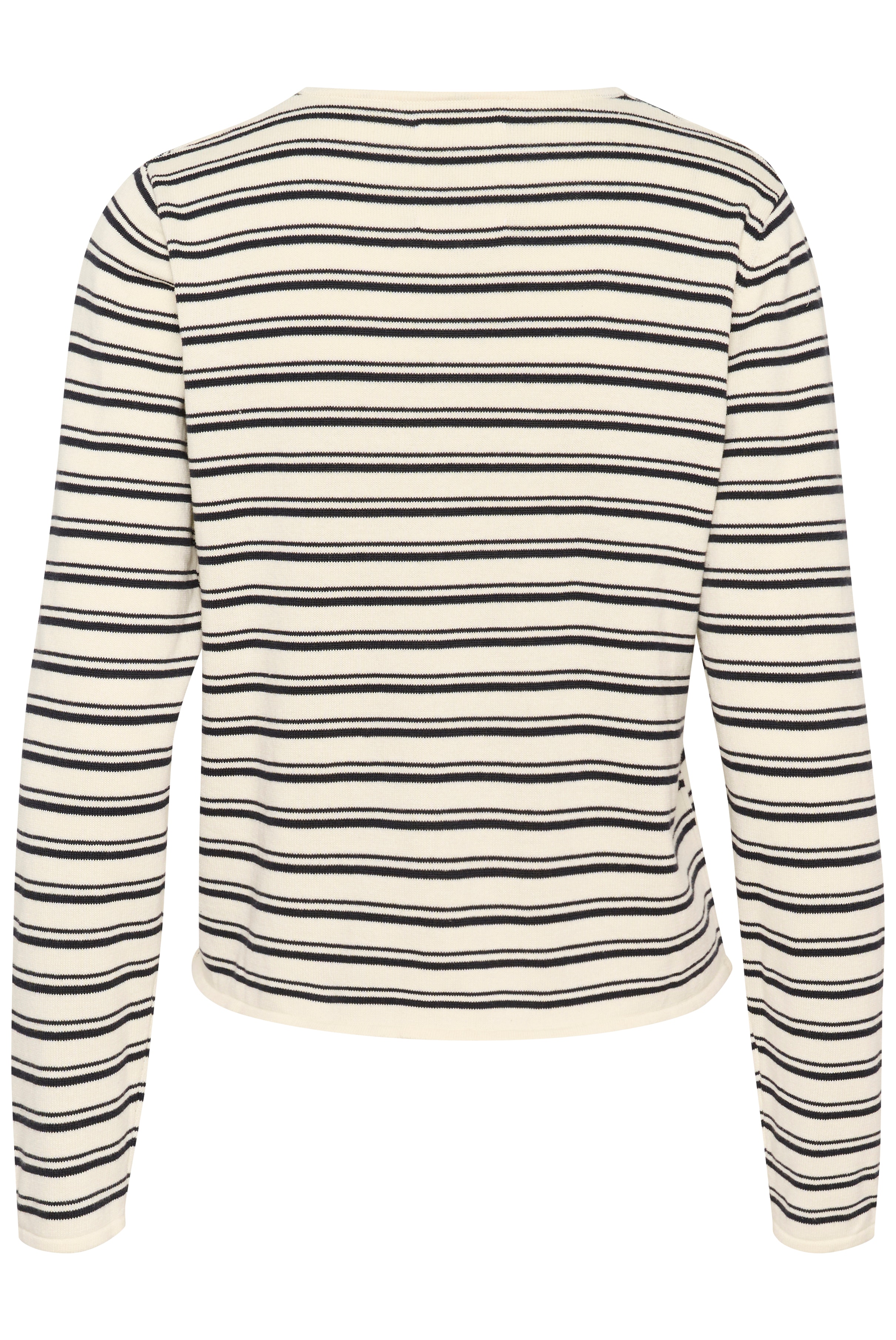 Het model is 178 cm lang en draagt maat M. Dit gestreepte vest is gemaakt van een zachte, lichte stof, ideaal voor zowel dagelijks gebruik als casual gelegenheden. Het heeft een klassieke ronde halslijn en decoratieve knopen aan de voorkant voor een tijdloze uitstraling. Perfect over een T-shirt of jurk voor een gelaagde look.