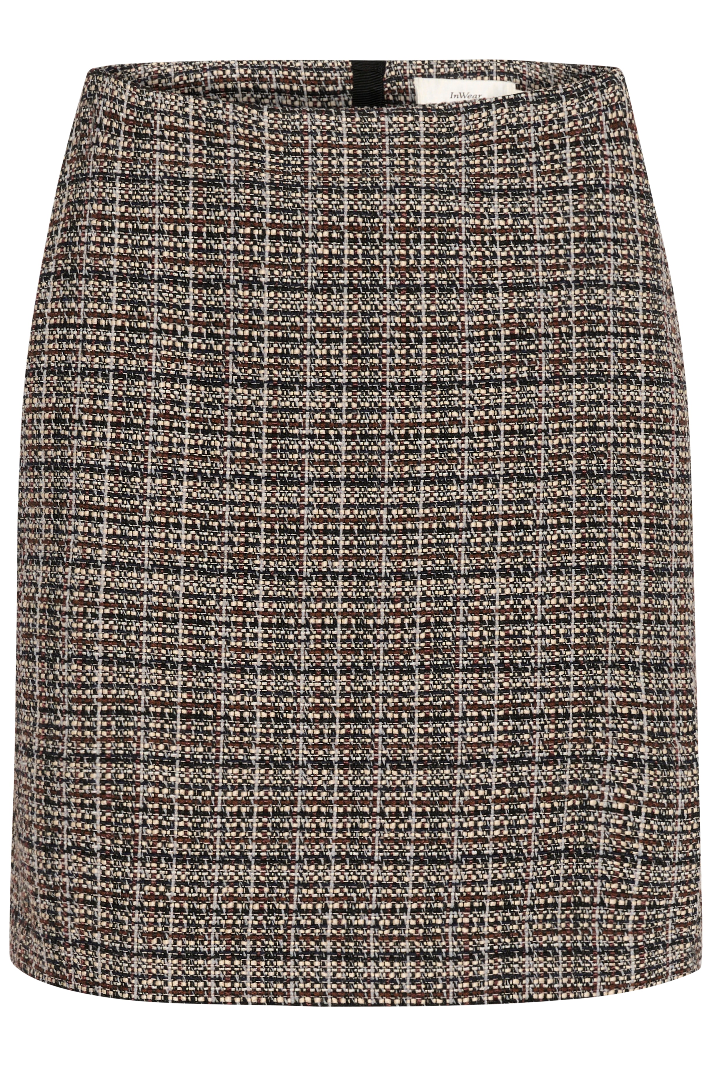 Tweedrok met rechte pasvorm en gestructureerd weefsel. De rok valt boven de knie en heeft een strakke, minimalistische tailleband.