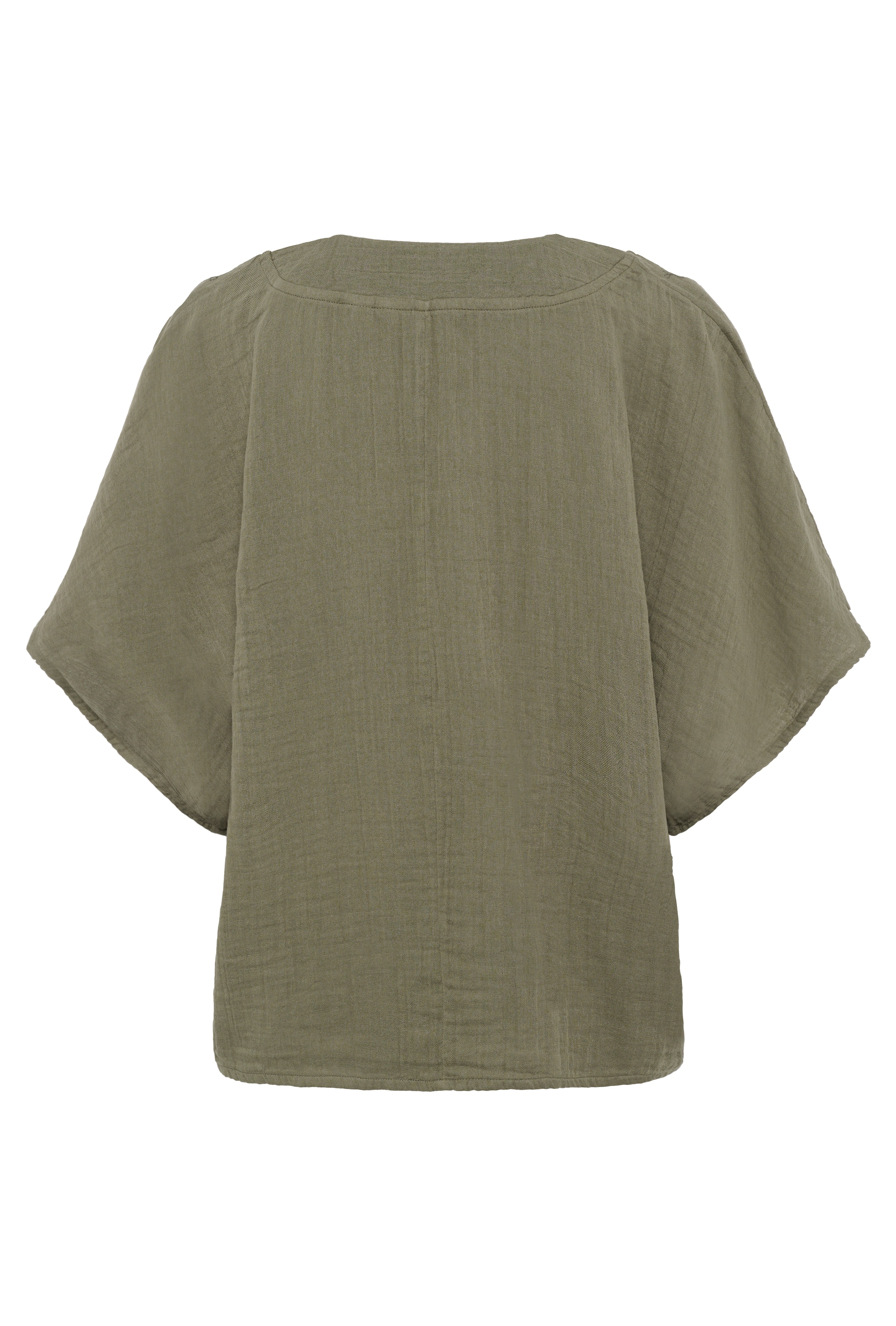 Mjuk blus med avslappnad passform och broderade detaljer på axlarna. Har korta, vida ärmar och en smickrande V-ringning. Perfekt för en avslappnad vardagsstil. Blusen är stor i storleken – överväg att välja en mindre storlek. Modellen är 177 cm lång och bär storlek M/38.