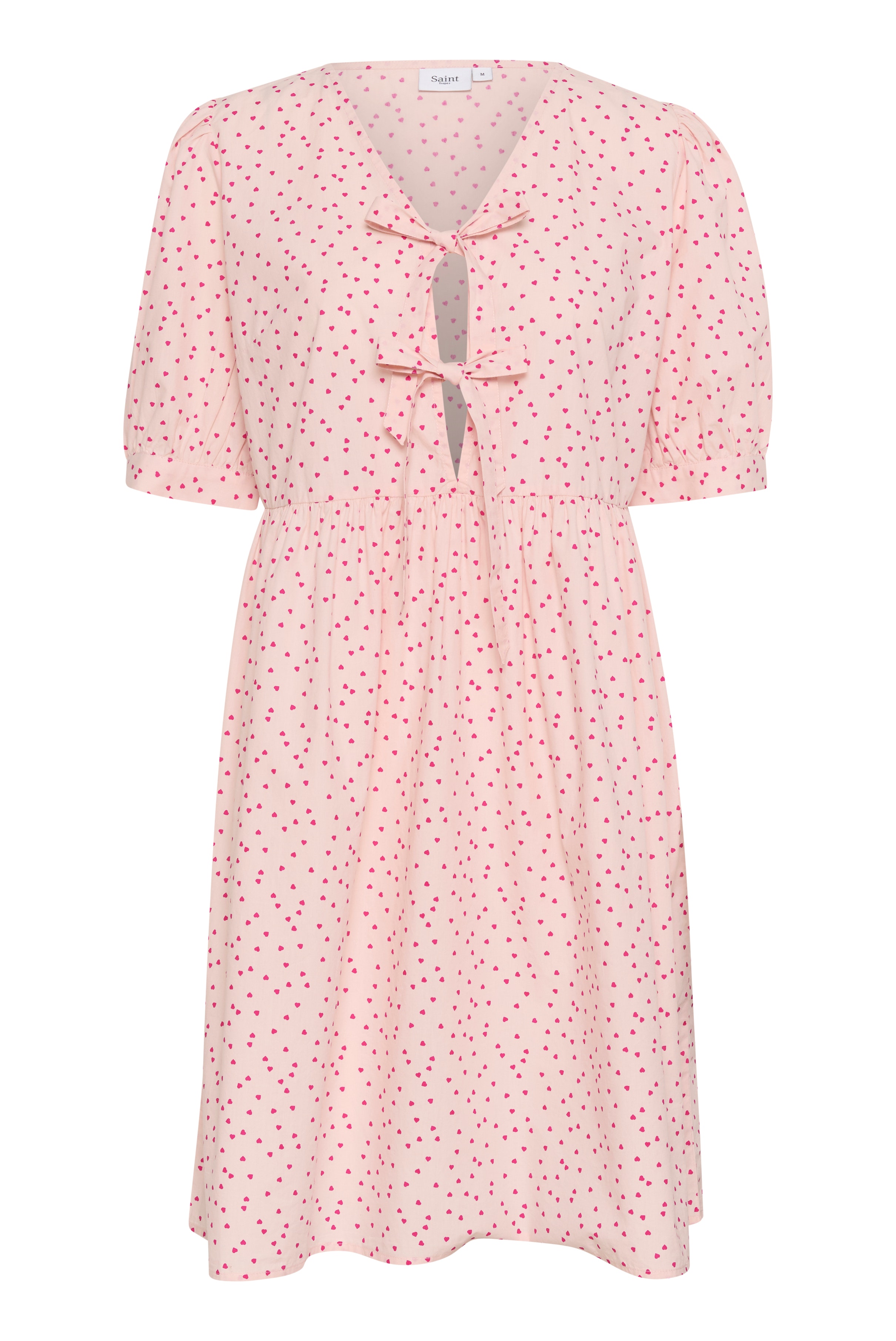 Knälång klänning med avslappnad passform, korta ärmar och V-ringning med knytdetaljer. Rynkad midja ger en smickrande siluett och lätt tyg garanterar komfort.