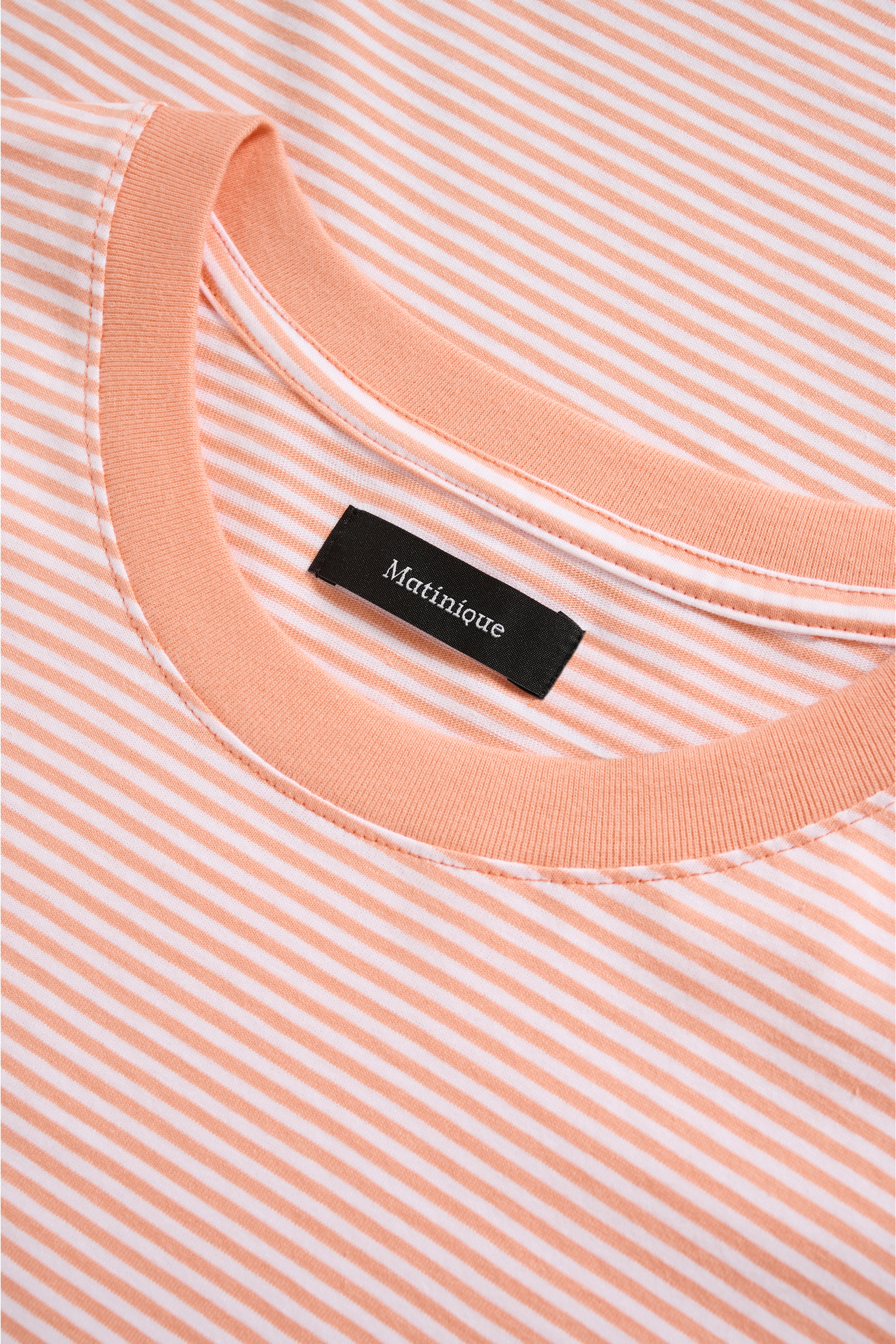 Randig t-shirt med rak passform, klassisk rund halsringning och korta ärmar. Diskreta horisontella ränder och kontrastkant ger en ledig twist. Mjuk och fin struktur.