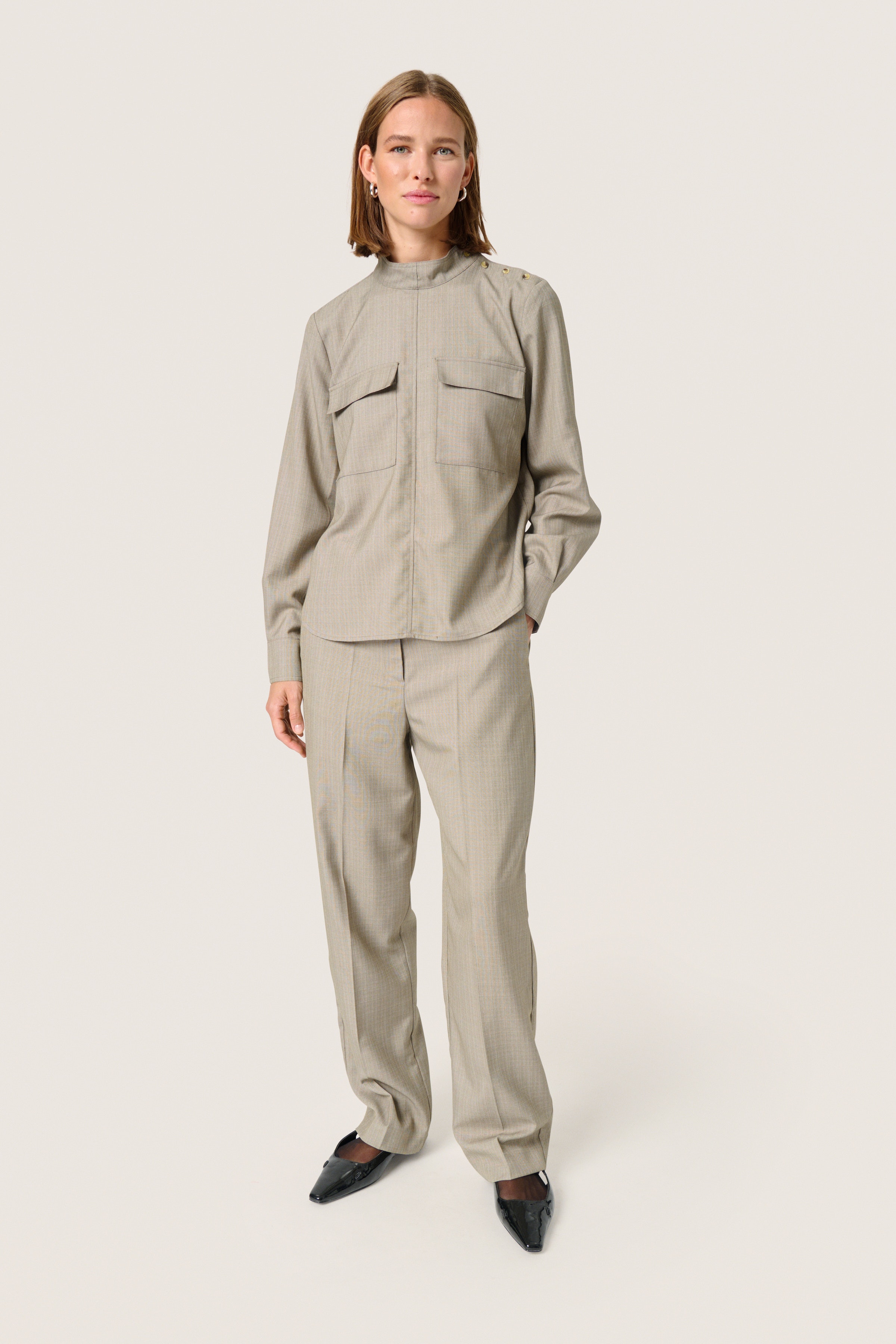 Skjorta med rak passform och strukturerad yta, ståkrage och långa ärmar. Bröstfickor med lock och knappar på axeln för modern känsla.